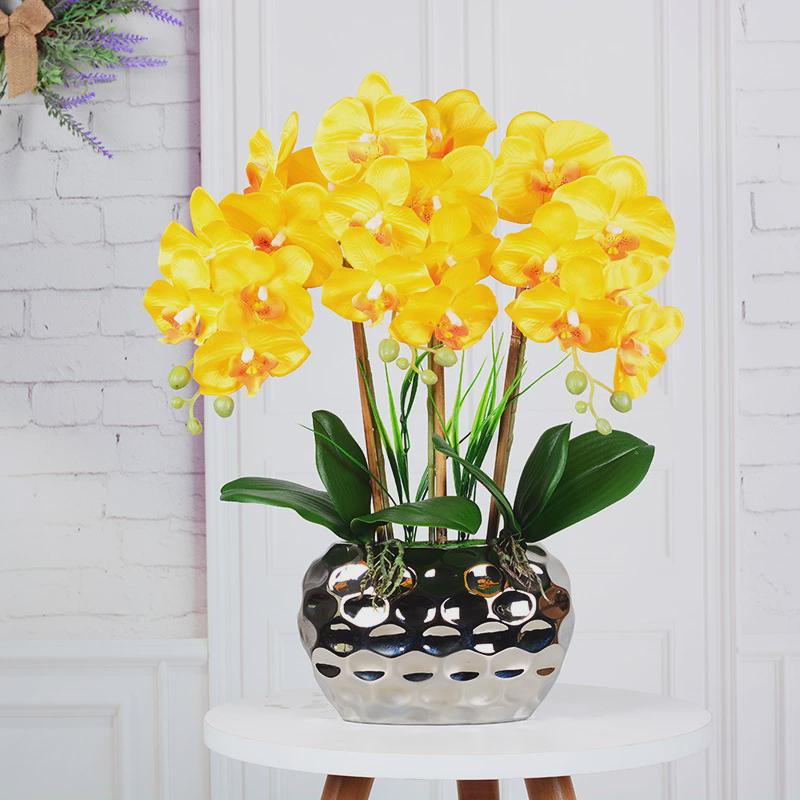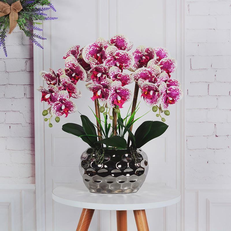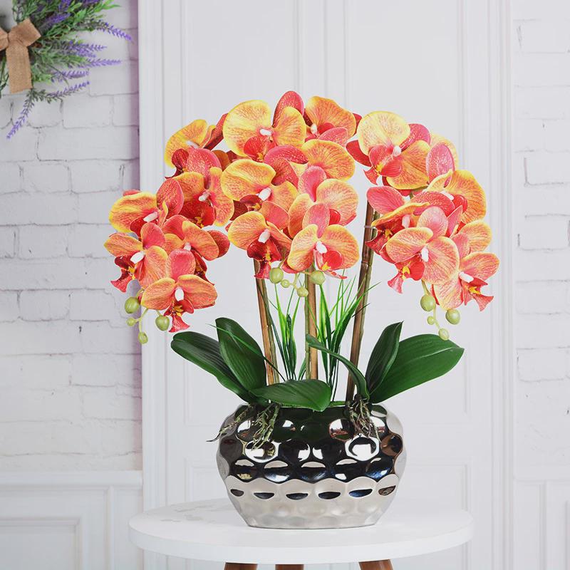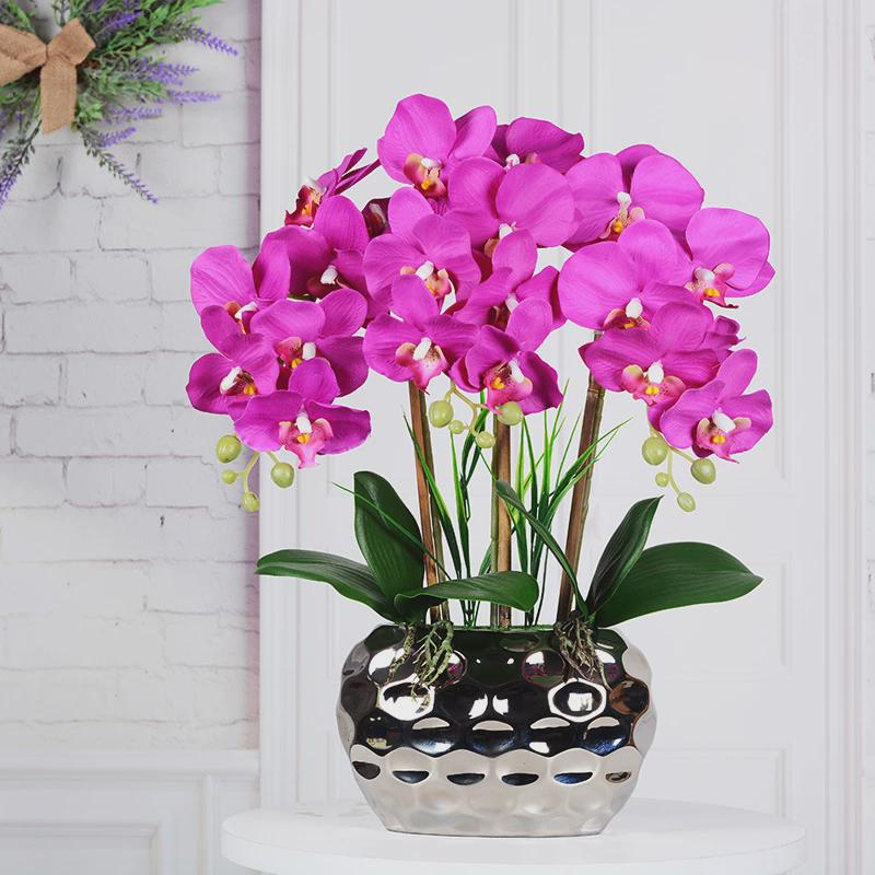 高档蝴蝶兰仿真花假花客厅摆设装饰花兰花插花花艺轻奢盆栽摆件
