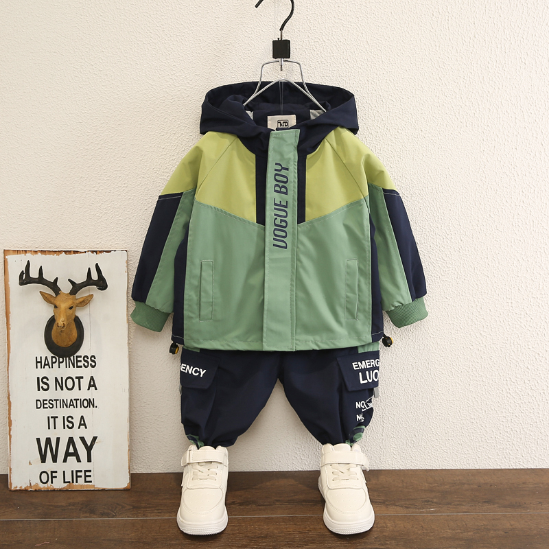 男童春装套装2021新款儿童运动服两件套宝宝冲锋衣潮男孩帅气衣服