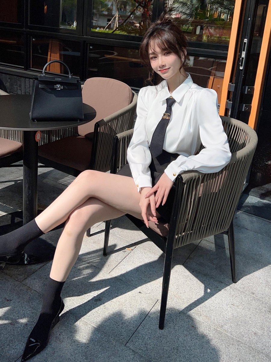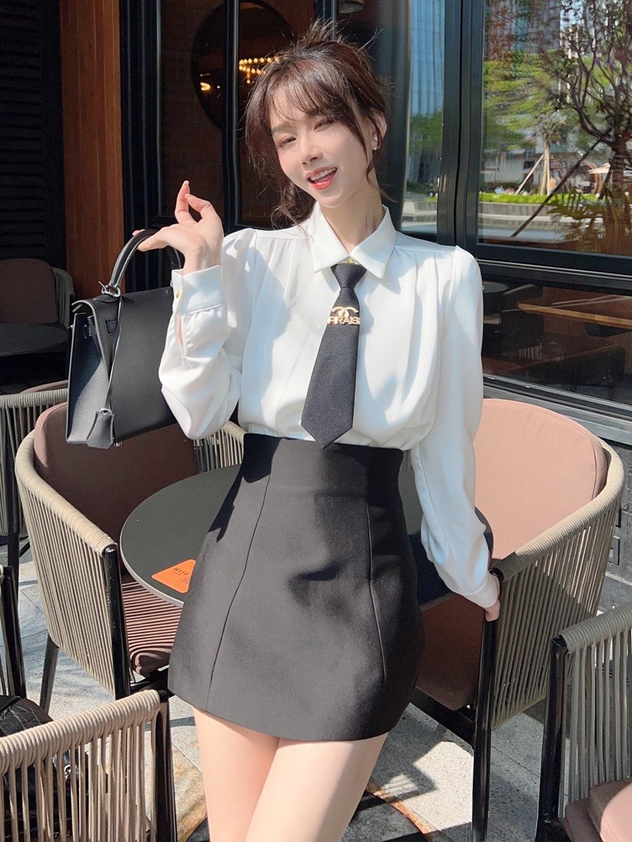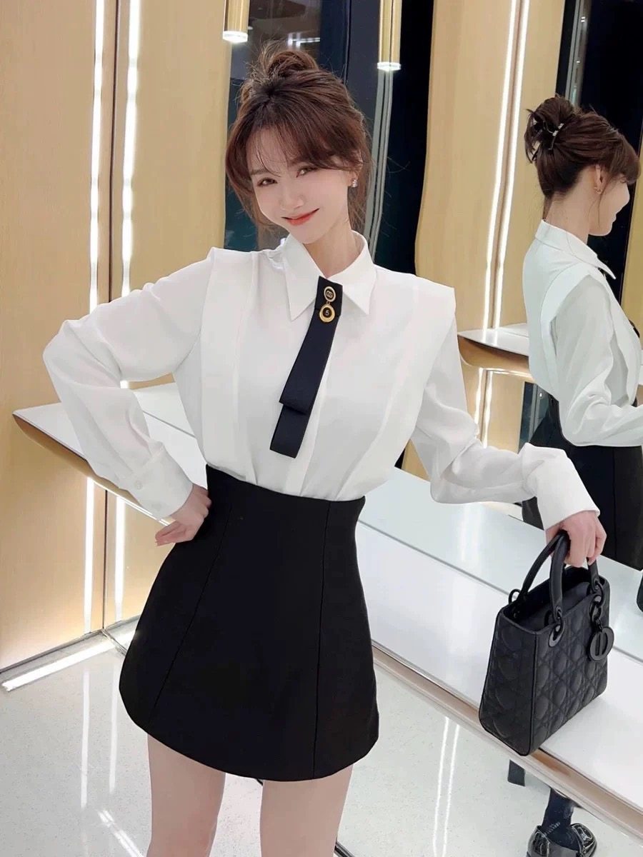 卡卡女装官方旗舰正品香榭千金法式衬衫配领带高腰显瘦白色衬衣女