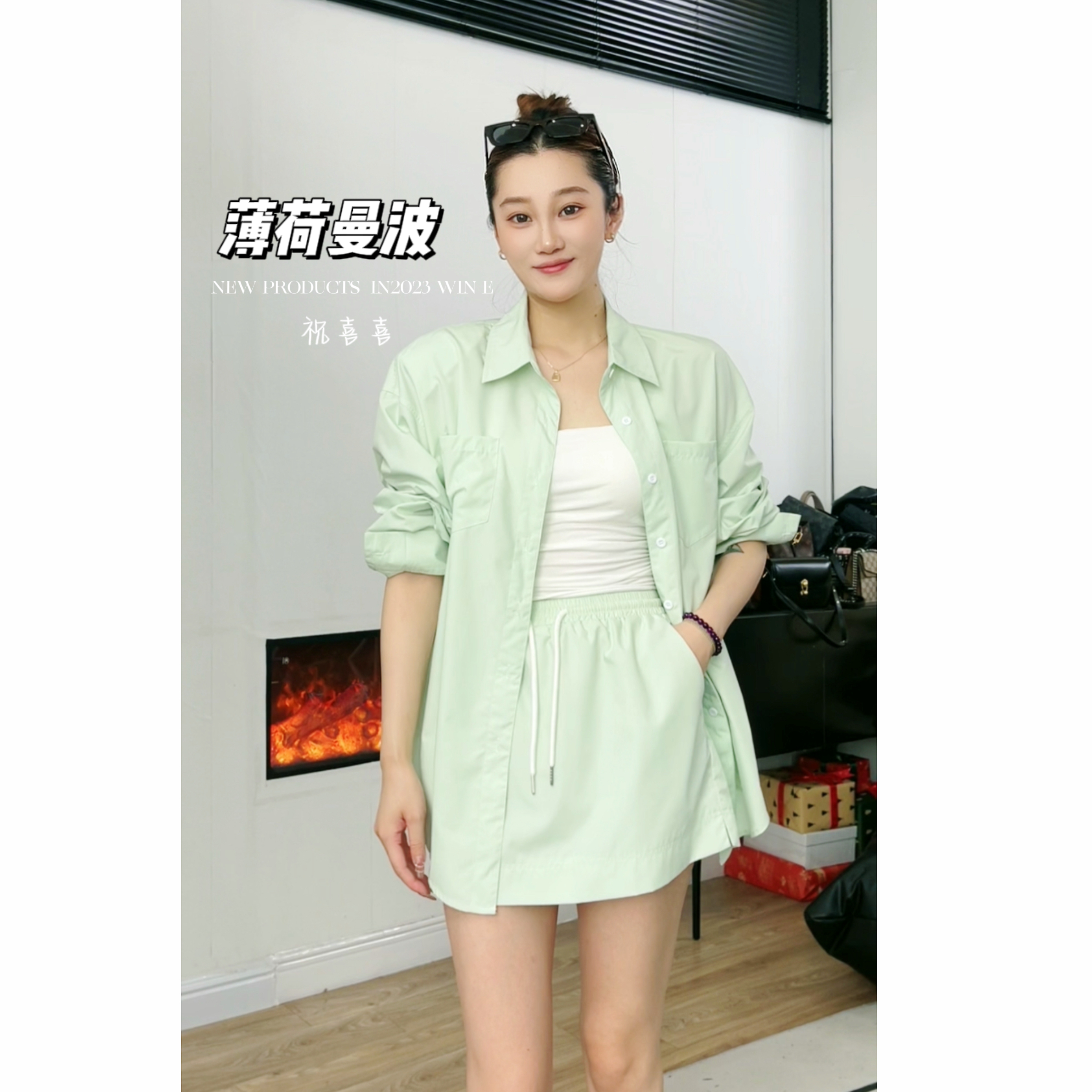 祝喜喜【随性】防晒春夏季长袖防晒女士短裤宽松衬衣套装