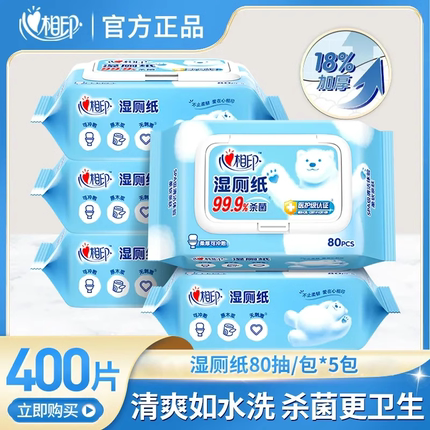 心相印湿厕纸实惠装80片5包400片家庭擦屁屁可冲散清洁温和不刺激