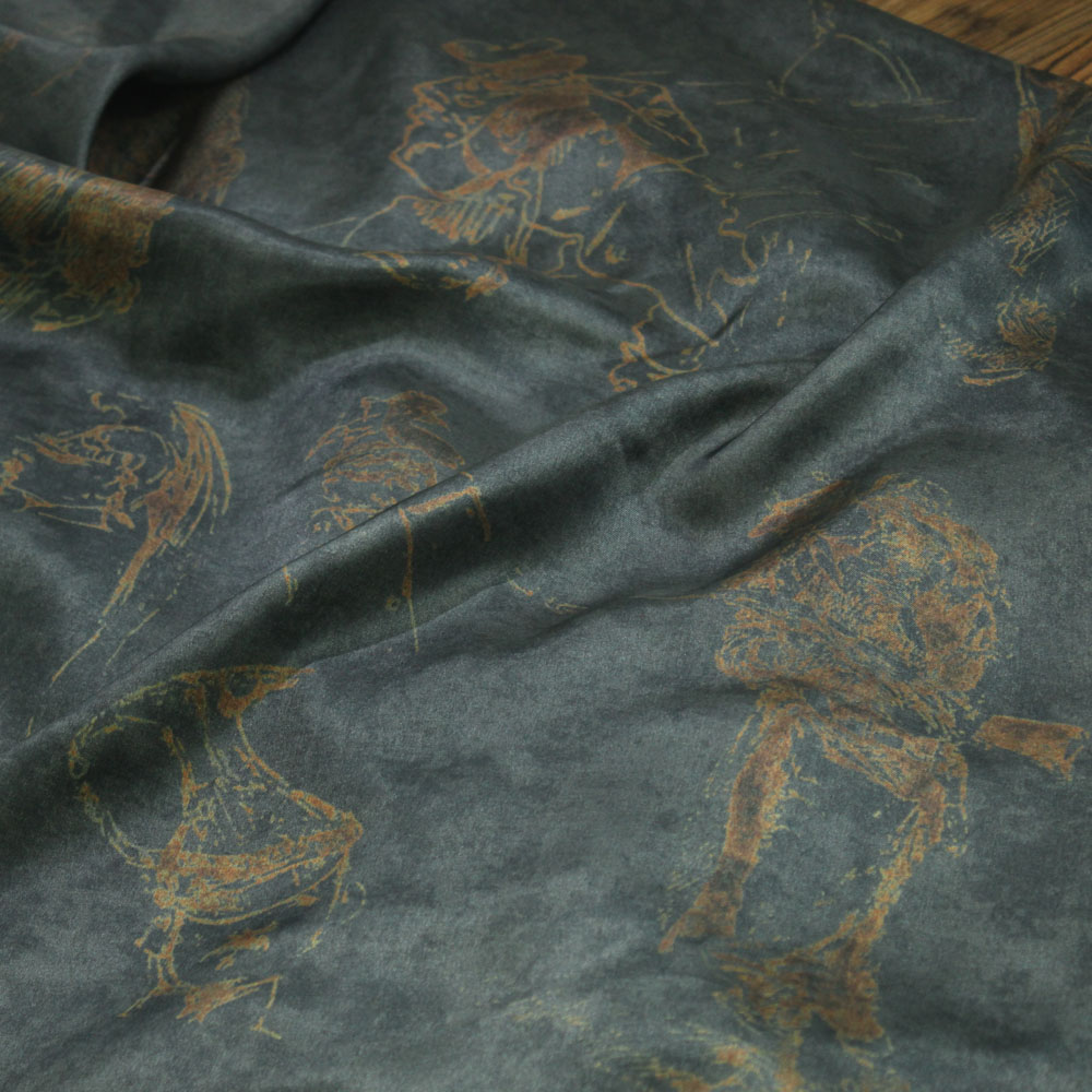 瓦娜家铜氨丝印花布料欧洲礼兵图案设计半身连衣裙袍子服装面料新