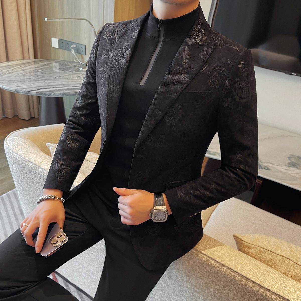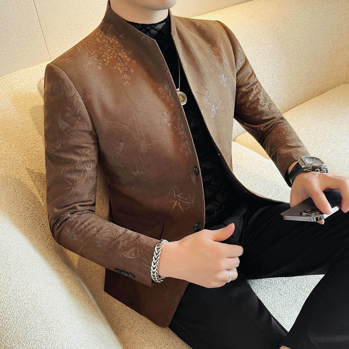 轻奢提花中山装男士春秋立领西服