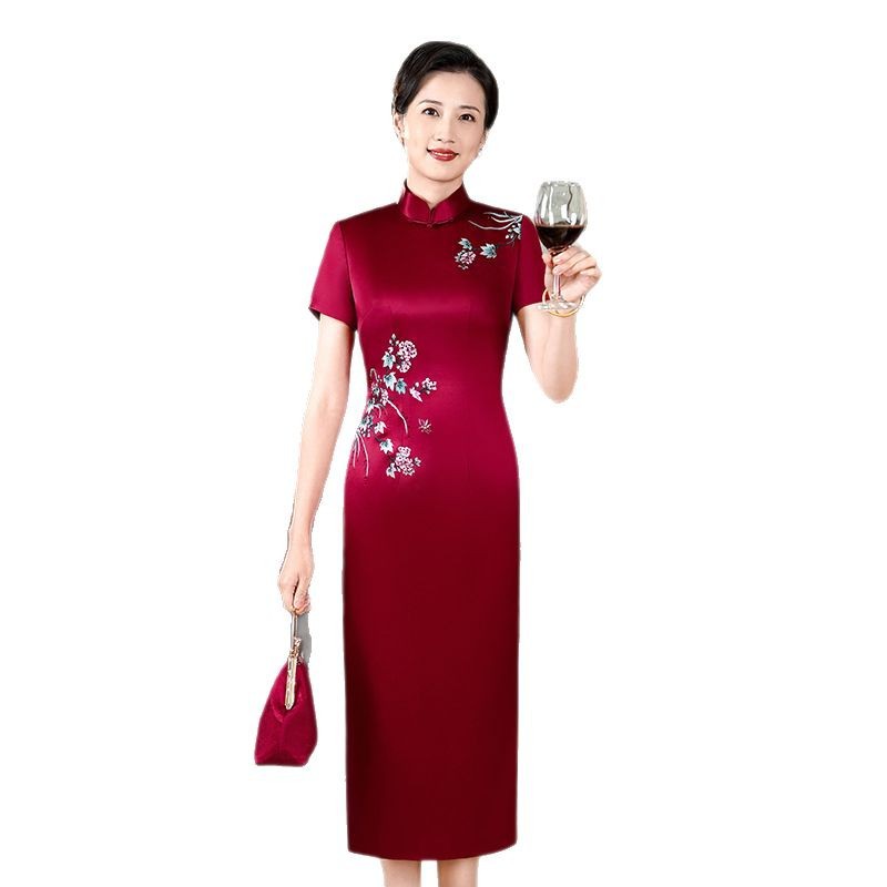 新款喜婆婆婚宴妈妈装旗袍 新中式刺绣国风裙子 喜妈妈礼服