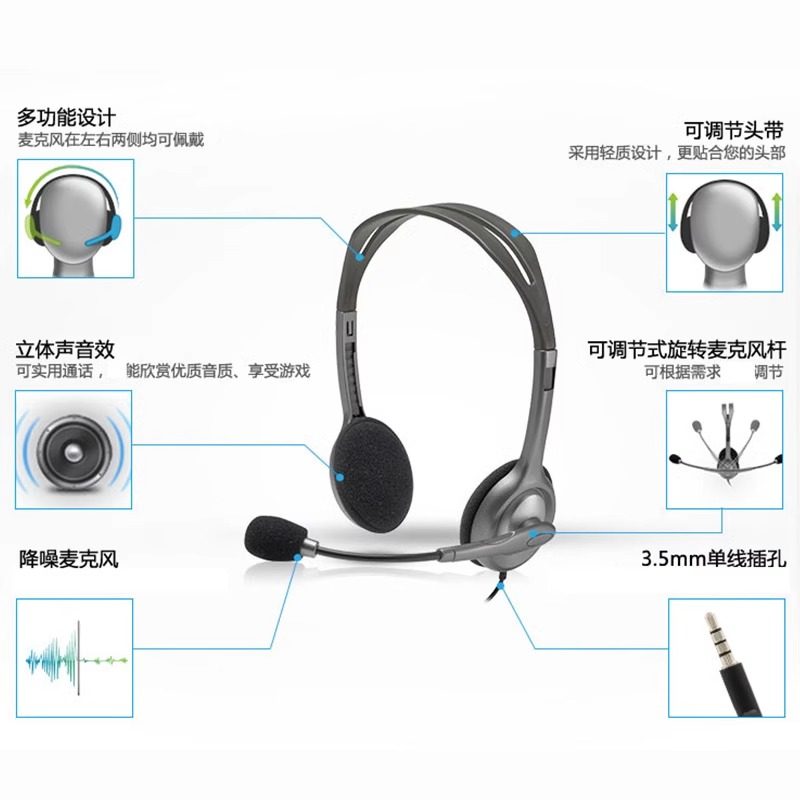 罗技H110/H111头戴式有线耳机降噪麦克风客服话务员专用耳麦3.5mm