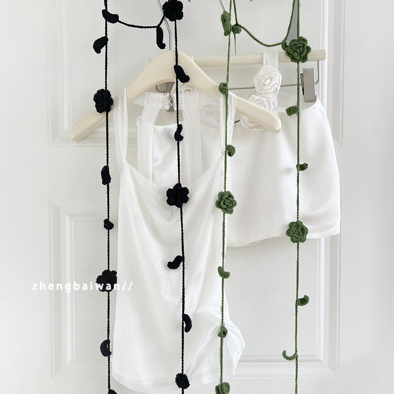 郑佰万 时髦小众 纯手工针织花朵细窄长围巾丝巾y2k辣妹颈链装饰