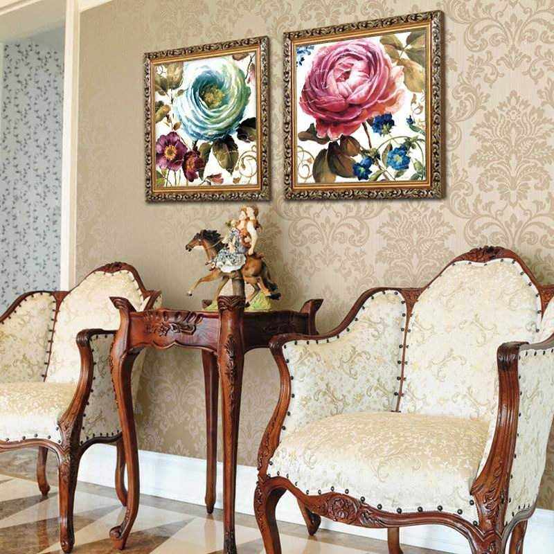 两联油画花卉田园客厅装饰画现代简欧沙发背景墙画餐厅挂画壁画