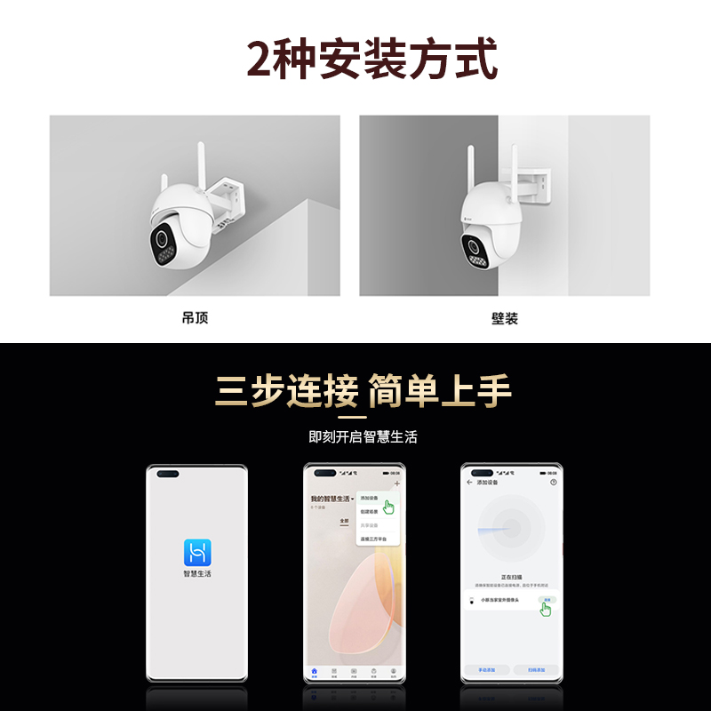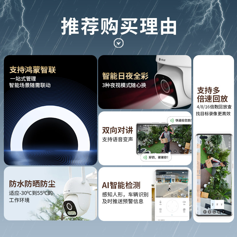 鸿蒙智选小豚摄像头监控器360度无死角室外家用手机远程智能云全景摄影头无线WiFi网络户外室内防水高清夜视