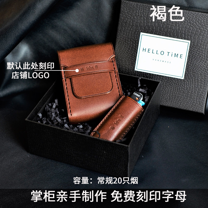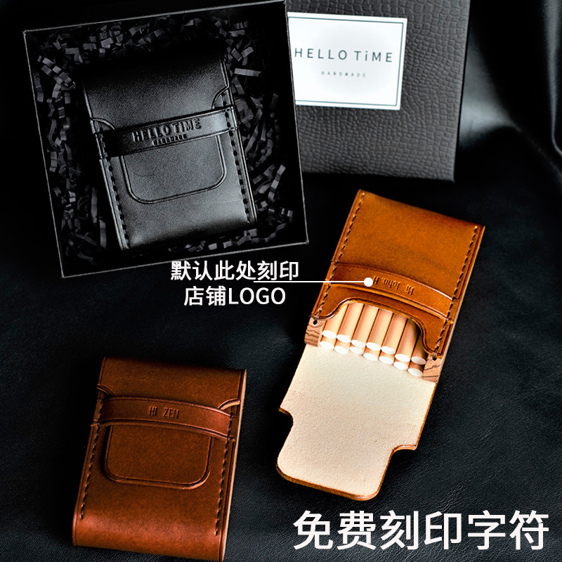 头层牛皮 胡桃木烟盒20只装便携真皮收纳盒烟具套装手工创意礼品