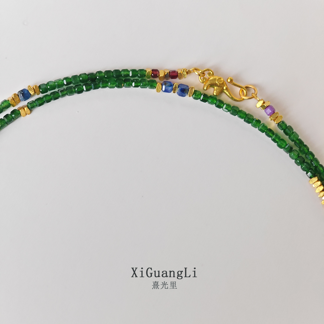 祖母绿宝石串珠项链天然绿玉髓方糖长款项链新中式毛衣链锁骨链女