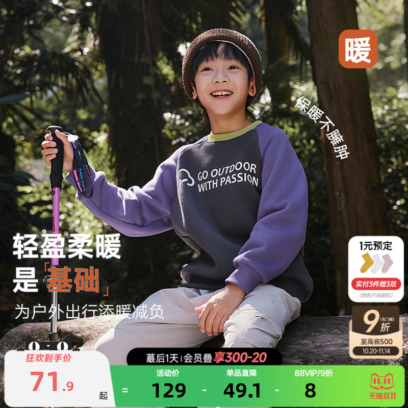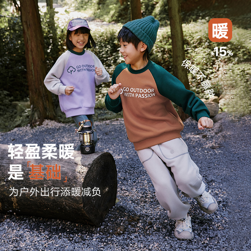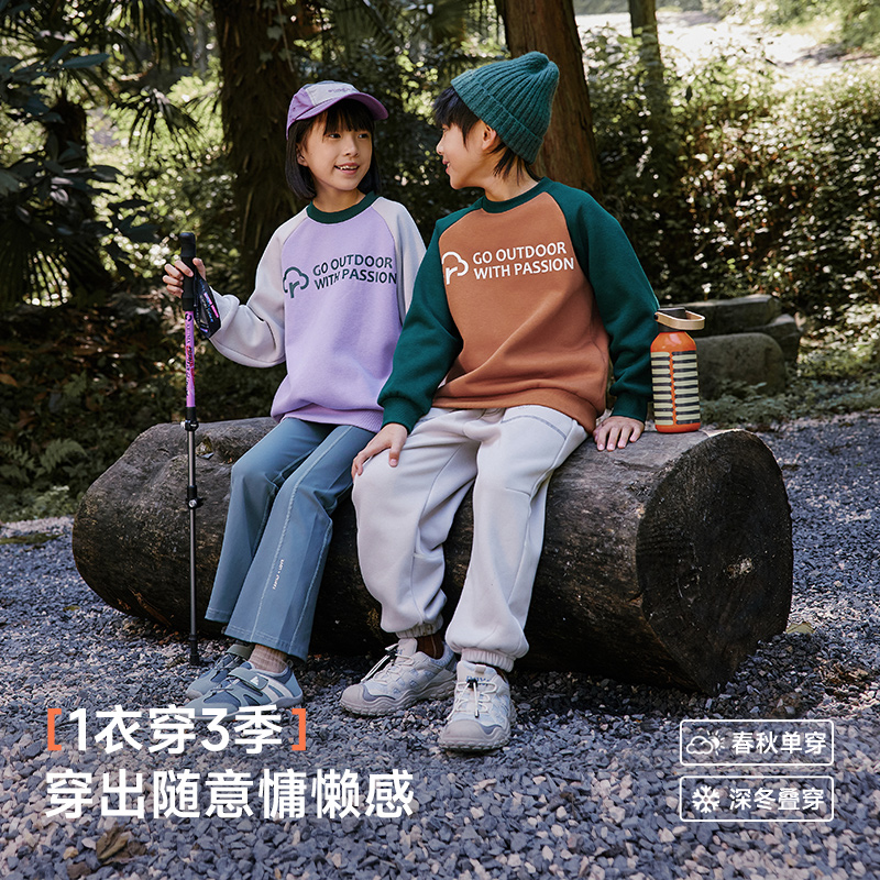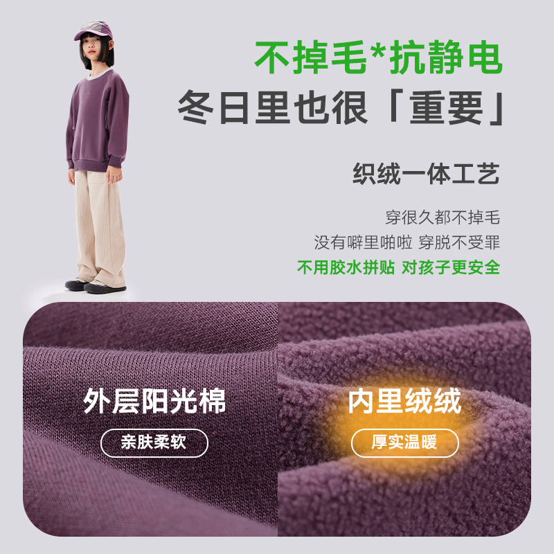 EBAER儿童加绒卫衣2025冬季新款男女童加厚保暖套头撞色童装上衣
