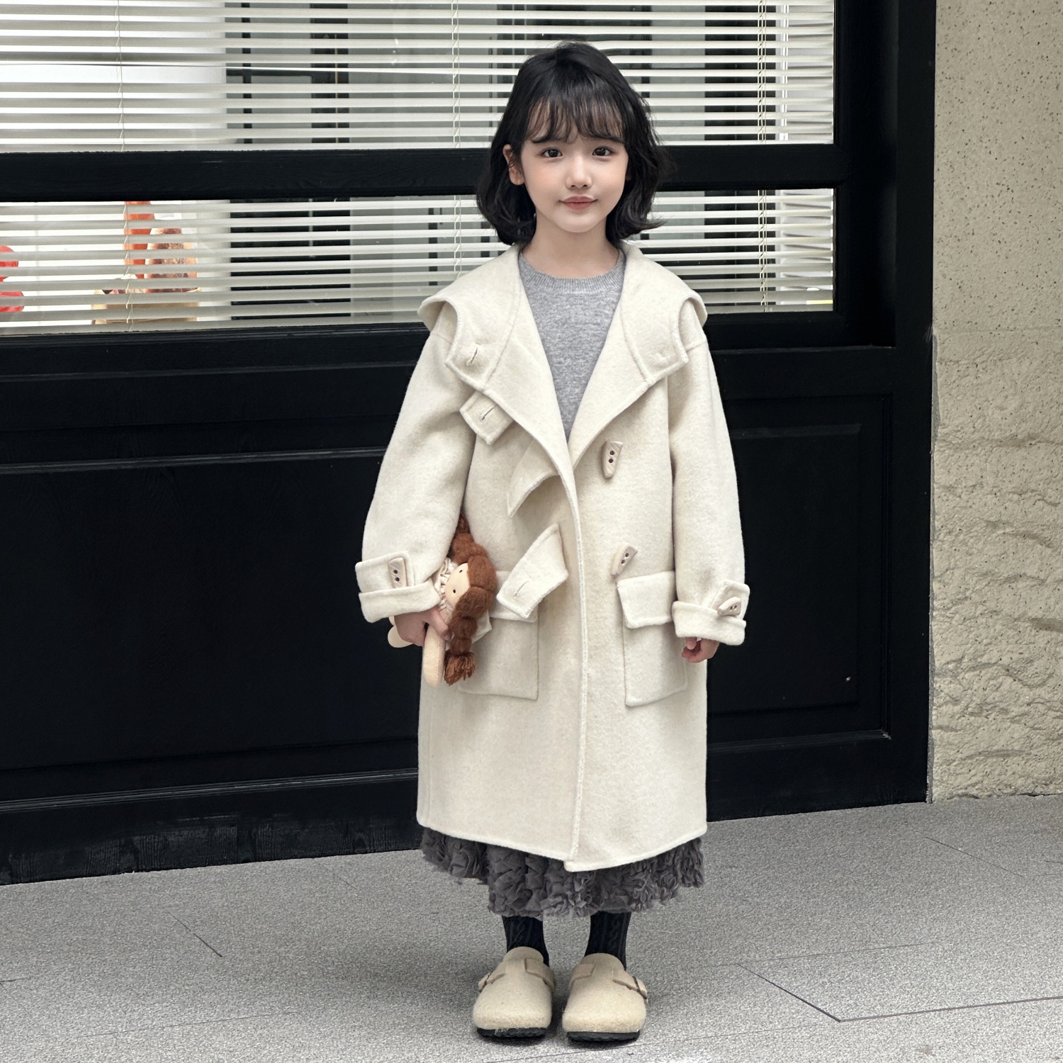 2025年新款韩国童装儿童双面羊毛大衣女童中长款羊绒呢子保暖外套