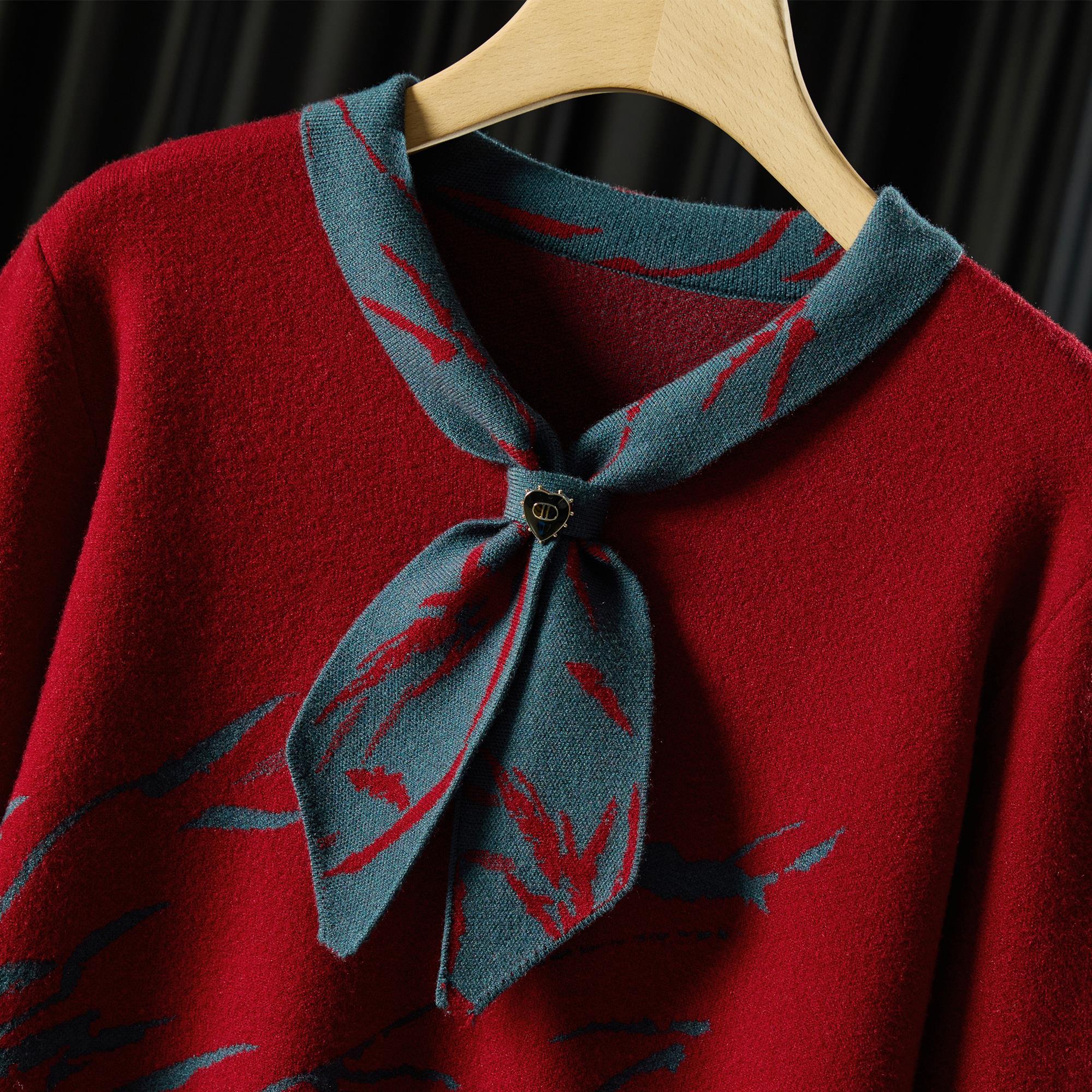妈妈羊毛衫秋冬红色毛衣新款喜婆婆婚宴中老年人妇女套装上衣服春