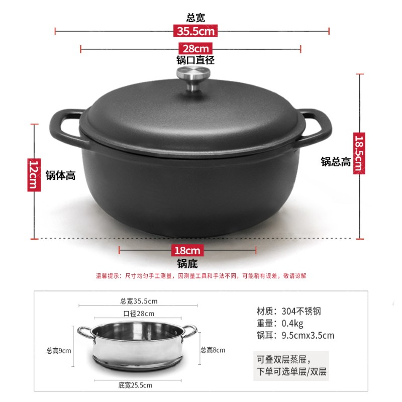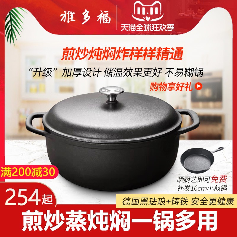 雅多福 铸铁炖锅汤锅28cm老式铁锅手工加厚一体炖煲汤煲生铁锅