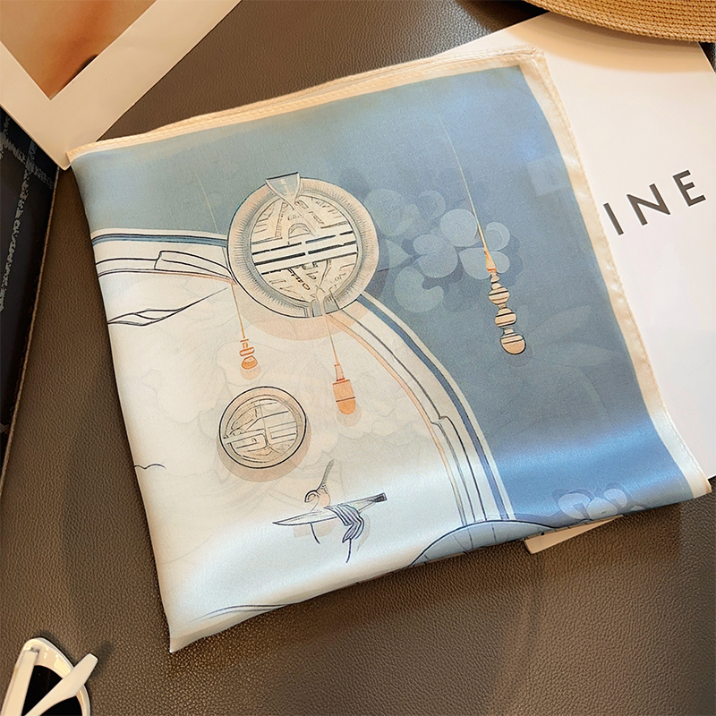 古风雅致印花真丝小方巾细腻质感装饰丝巾女春秋薄款系脖领巾围巾