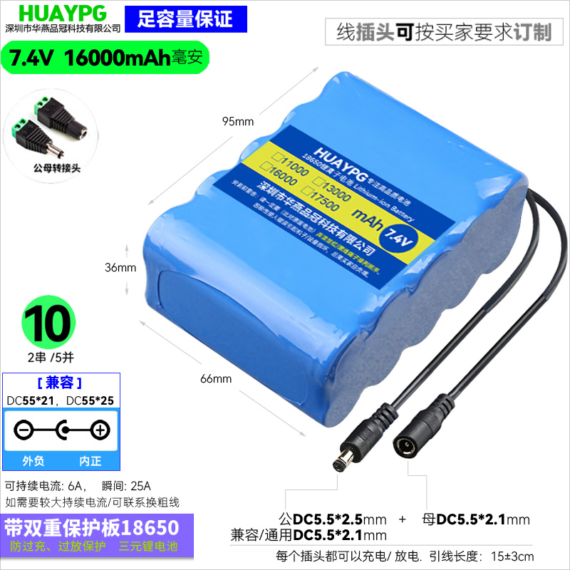 18650锂电池组8.4V大容量9V外挂可充电移动蓄电池电子琴电瓶备用