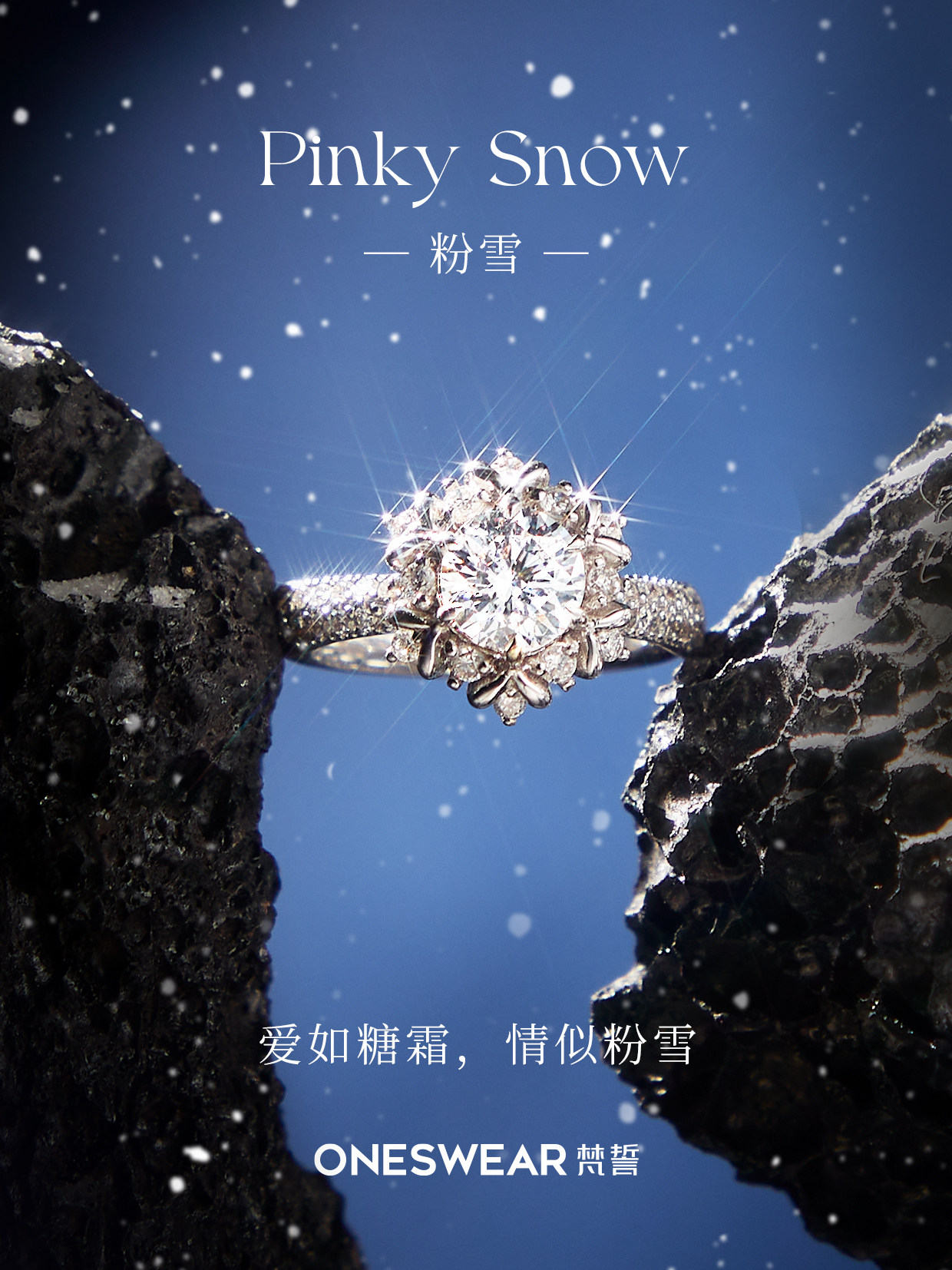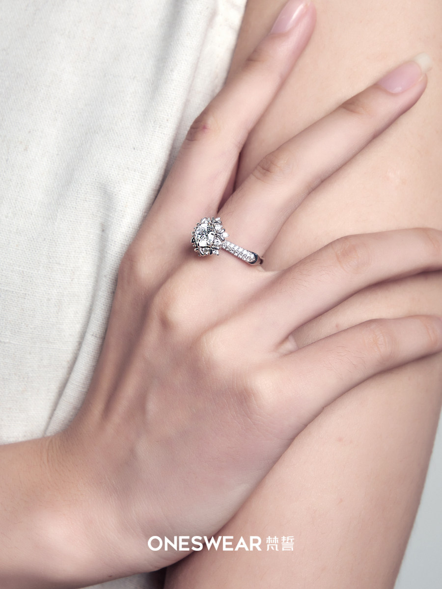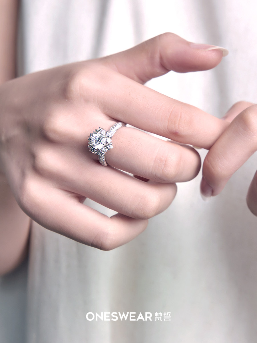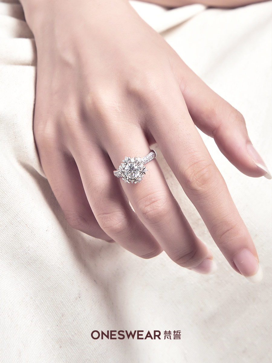 ONE SWEAR/梵誓粉雪18k金钻戒排钻钻石女士戒指戒托求婚结婚定制