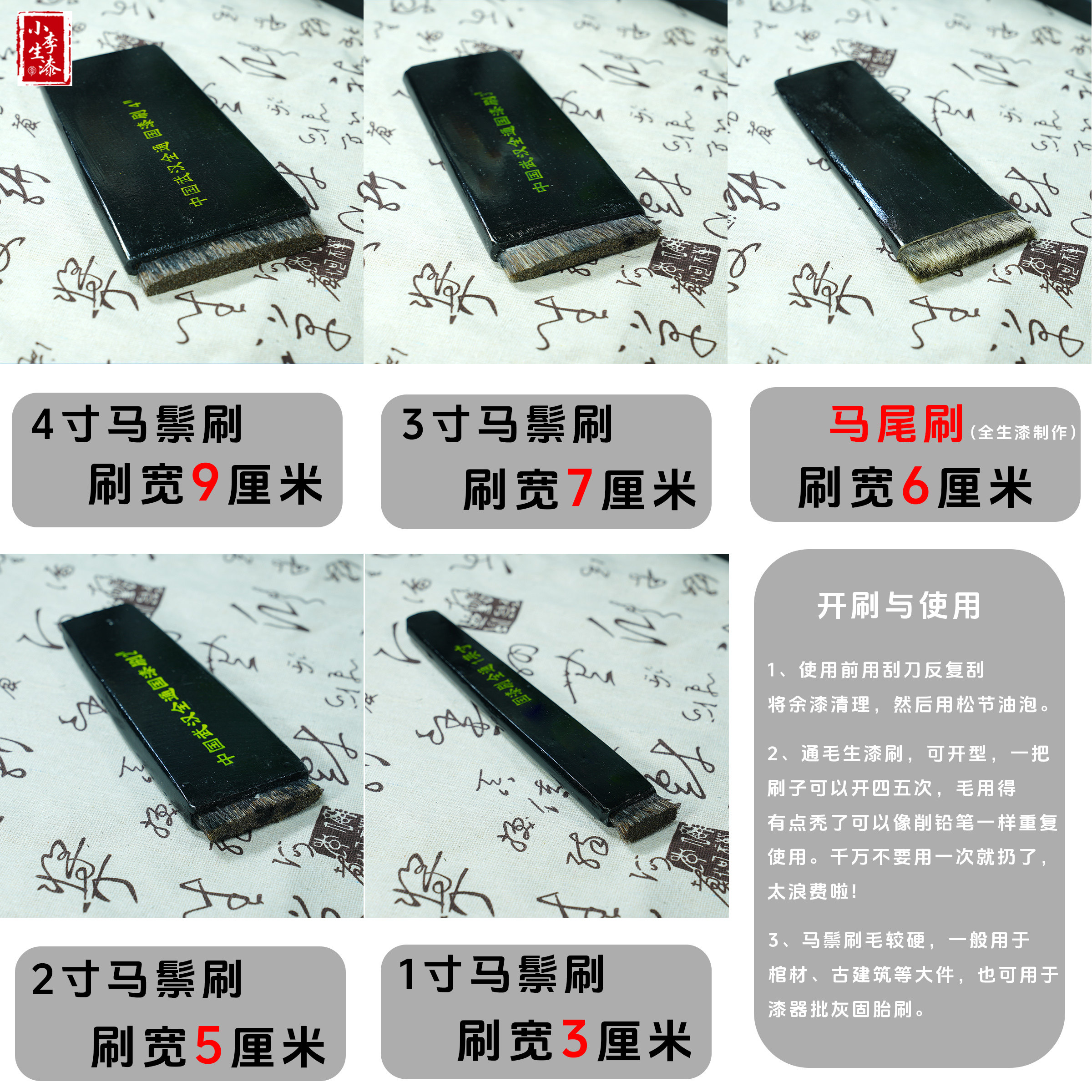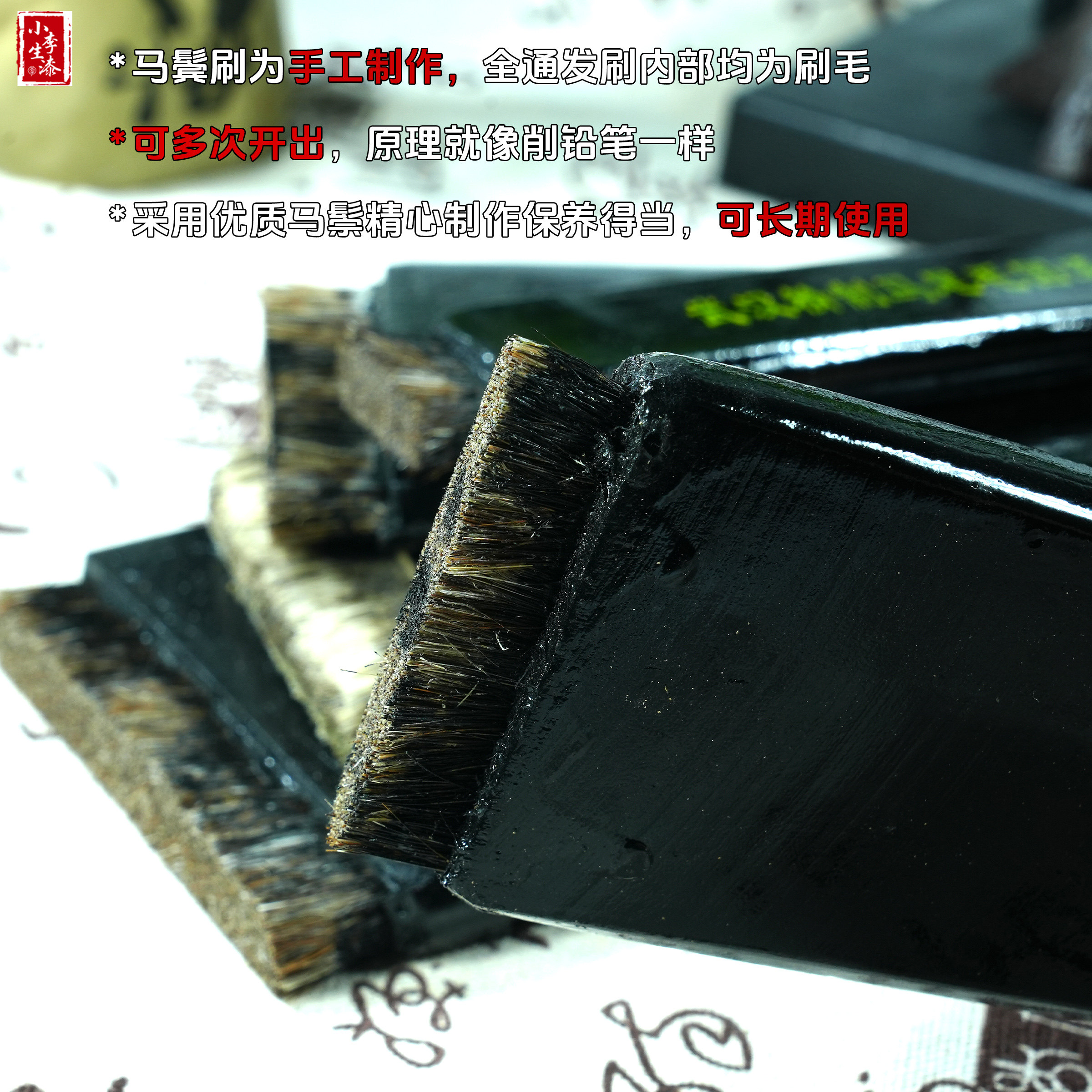 大漆马鬃毛刷/纯手工制作毛刷/可重复使用手工全通毛刷 可开型
