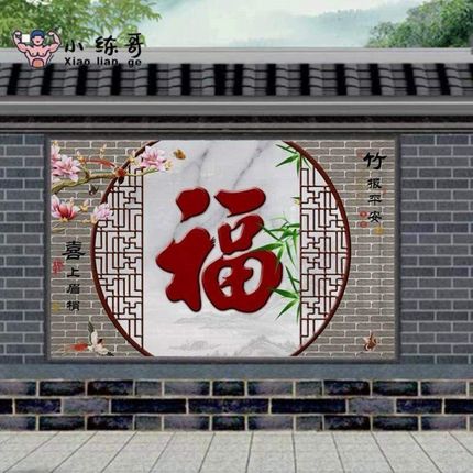 农村室外瓷砖装饰迎拼画别墅定制门墙墙微晶石户外福字庭院背景墙