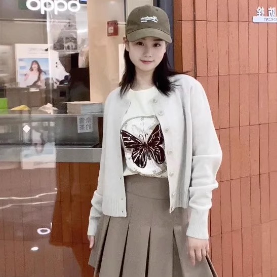 阿玛施女装正品2025秋新款宽松保暖绵羊毛圆领针织开衫外套548033