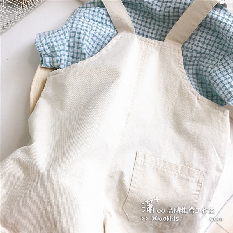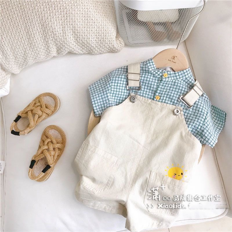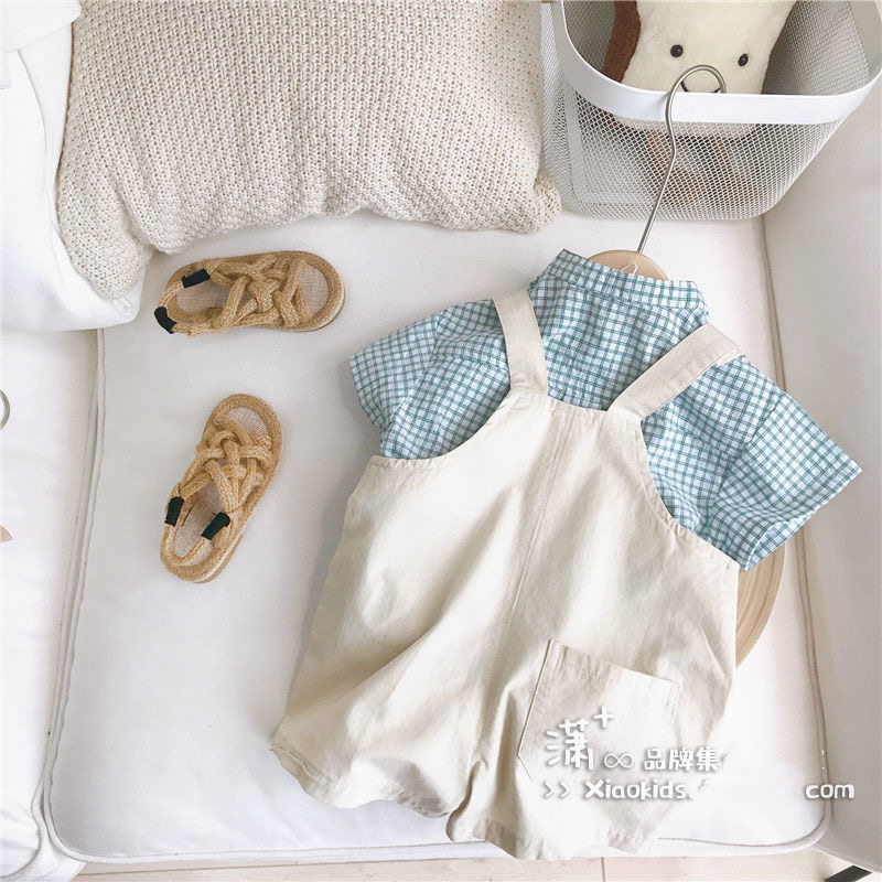 夏日小清新~韩版儿童格子衬衫背带裤套装夏季男童套装薄款ins风