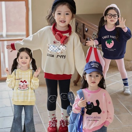 女童卫衣2025秋季新款洋气儿童装休闲长袖宝宝卡通撞色长袖上衣潮