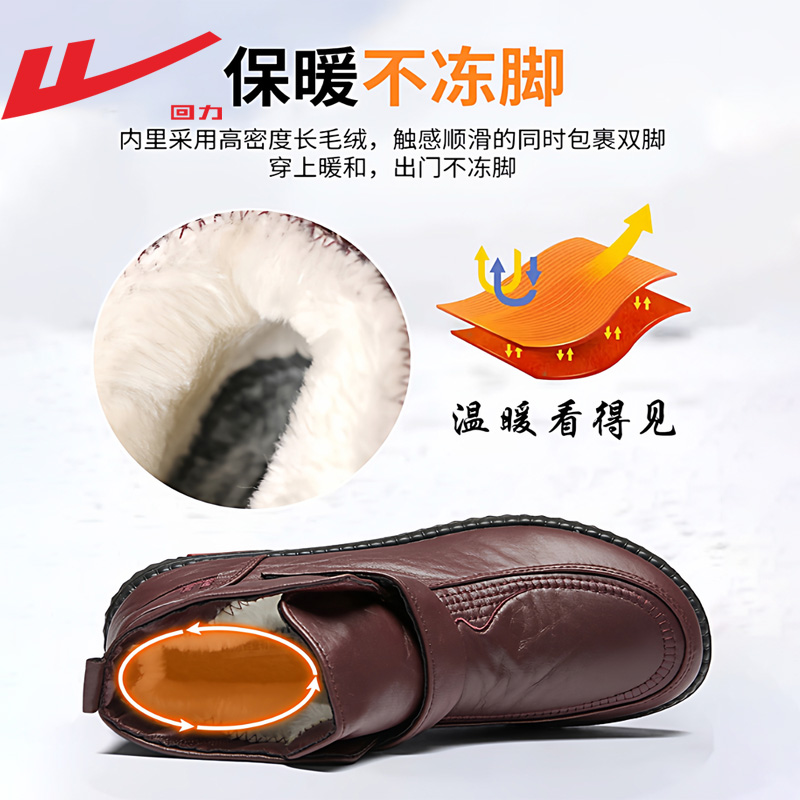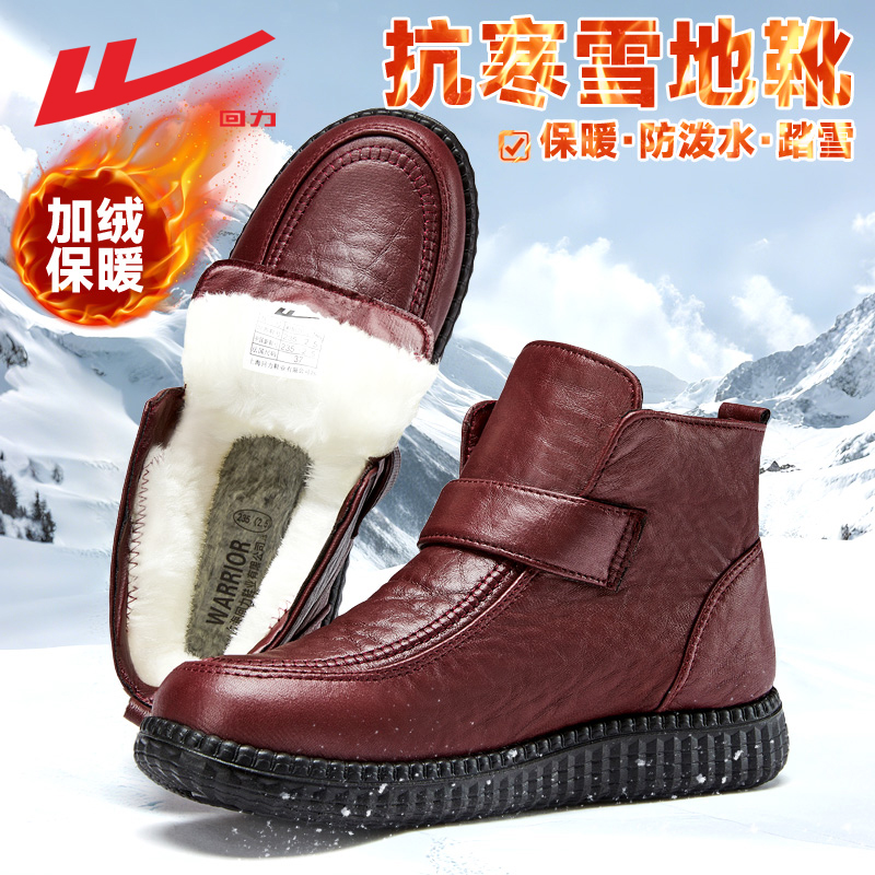 回力棉鞋女冬季加绒保暖雪地靴中老年妈妈鞋防滑防水加厚老人棉靴