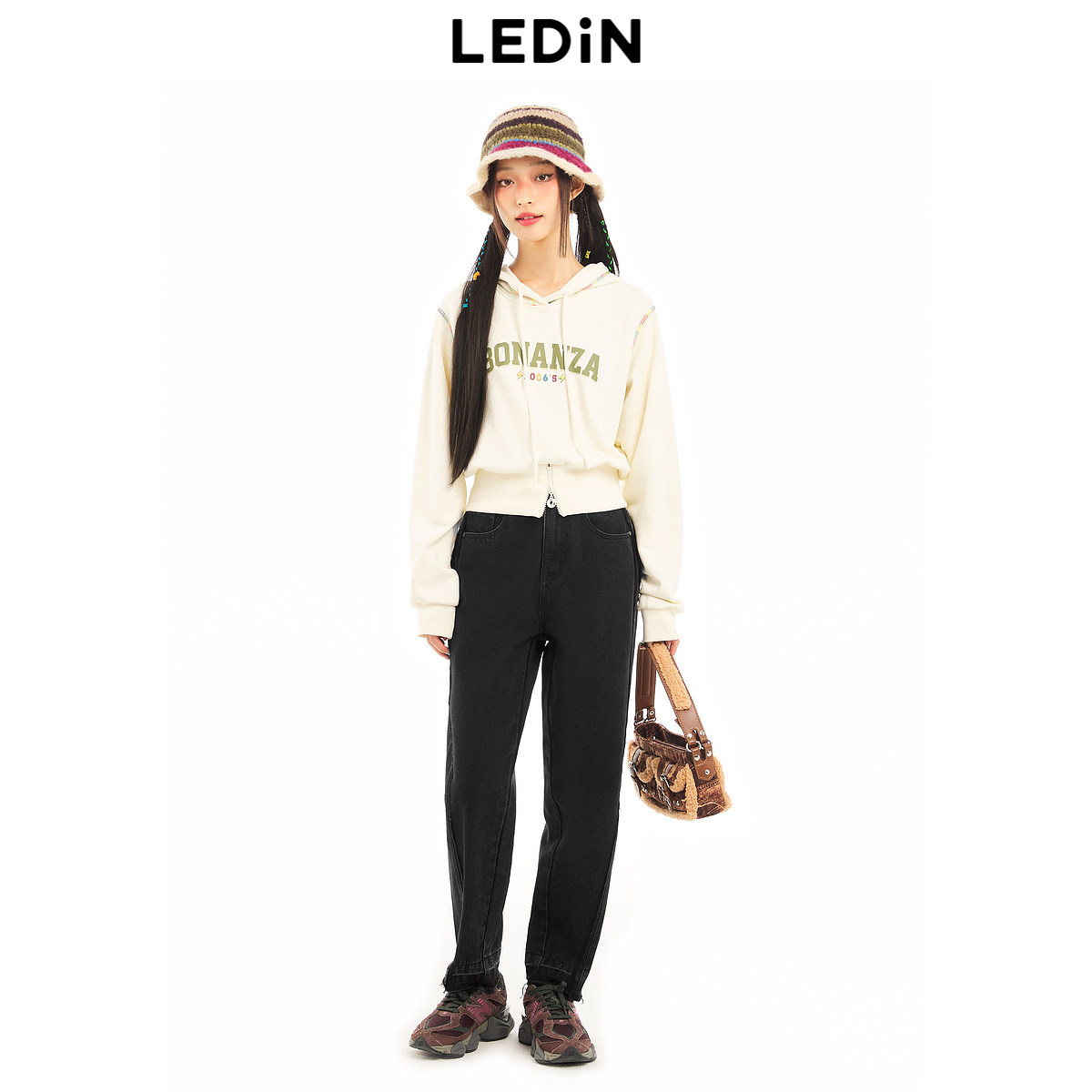 乐町百搭显瘦宽松秋冬新款牛仔锥形裤C2HAD4150