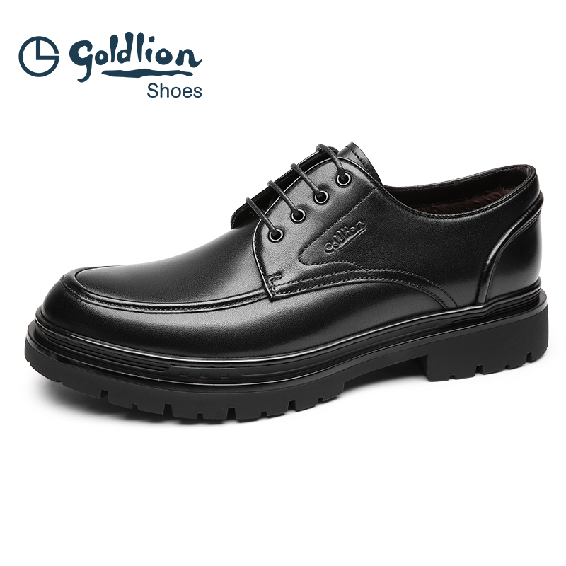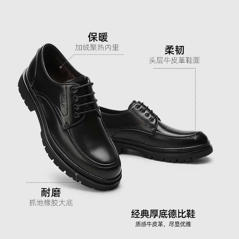 金利来男鞋 秋冬季新款商务正装加绒保暖皮鞋时尚厚底真皮德比鞋