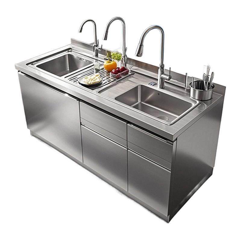 成都不锈钢橱柜定制加厚304家用厨房厨柜台面整体灶台一体柜