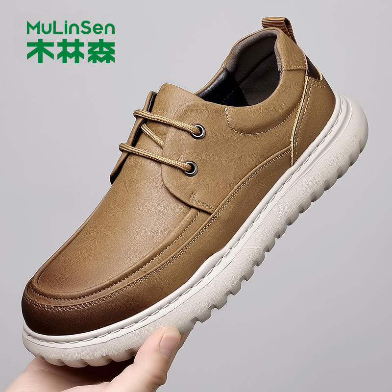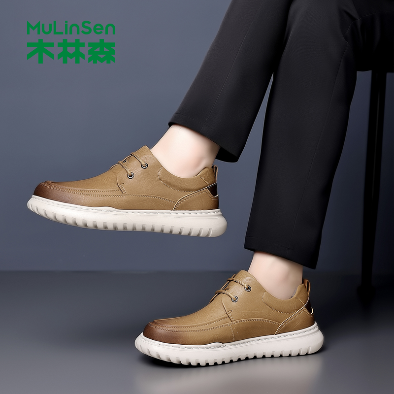木林森真皮轻便系带男士休闲鞋