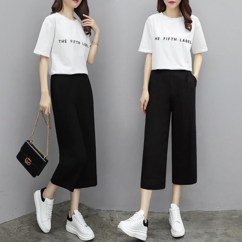 2021新款雪纺阔腿裤女夏季高腰垂感七分裤黑色薄款宽松百搭九分裤