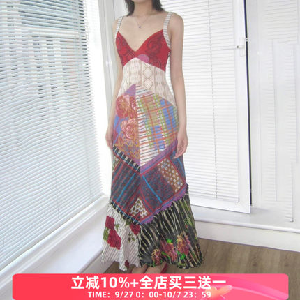 FabGirls 文艺复古民族风特色印花吊带连衣裙 小众百搭显瘦长裙