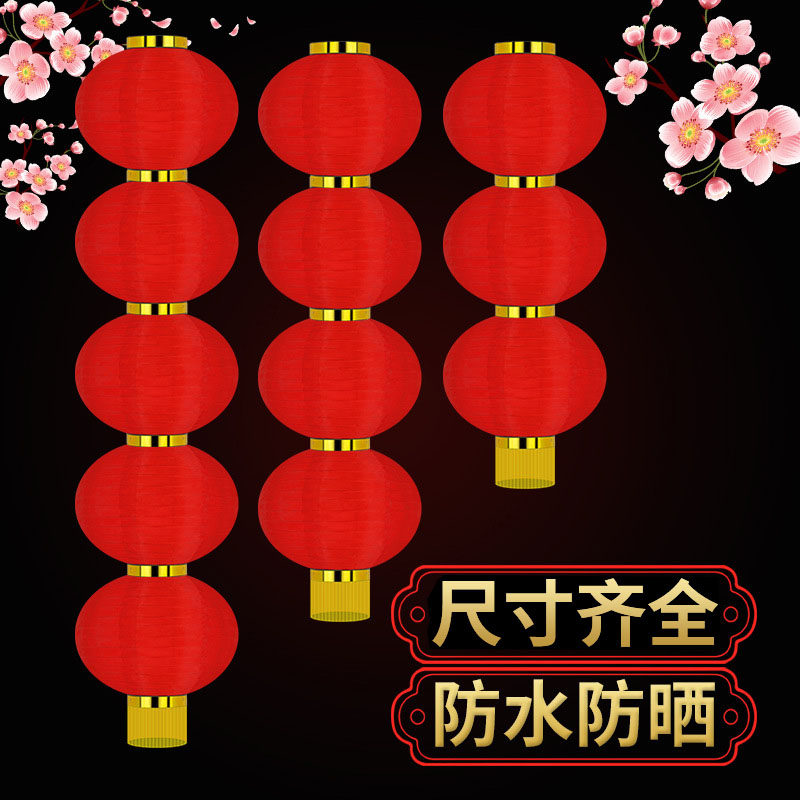 元宵节新年装饰大红灯笼串户外防水绸布折叠三四五连串挂树宫灯