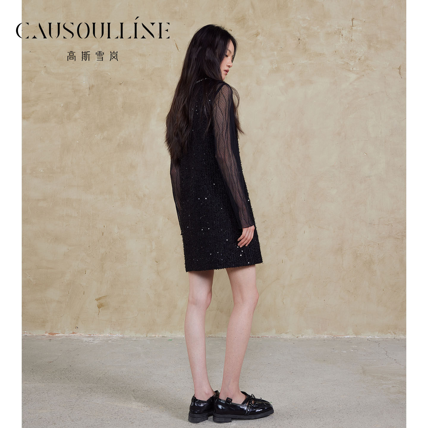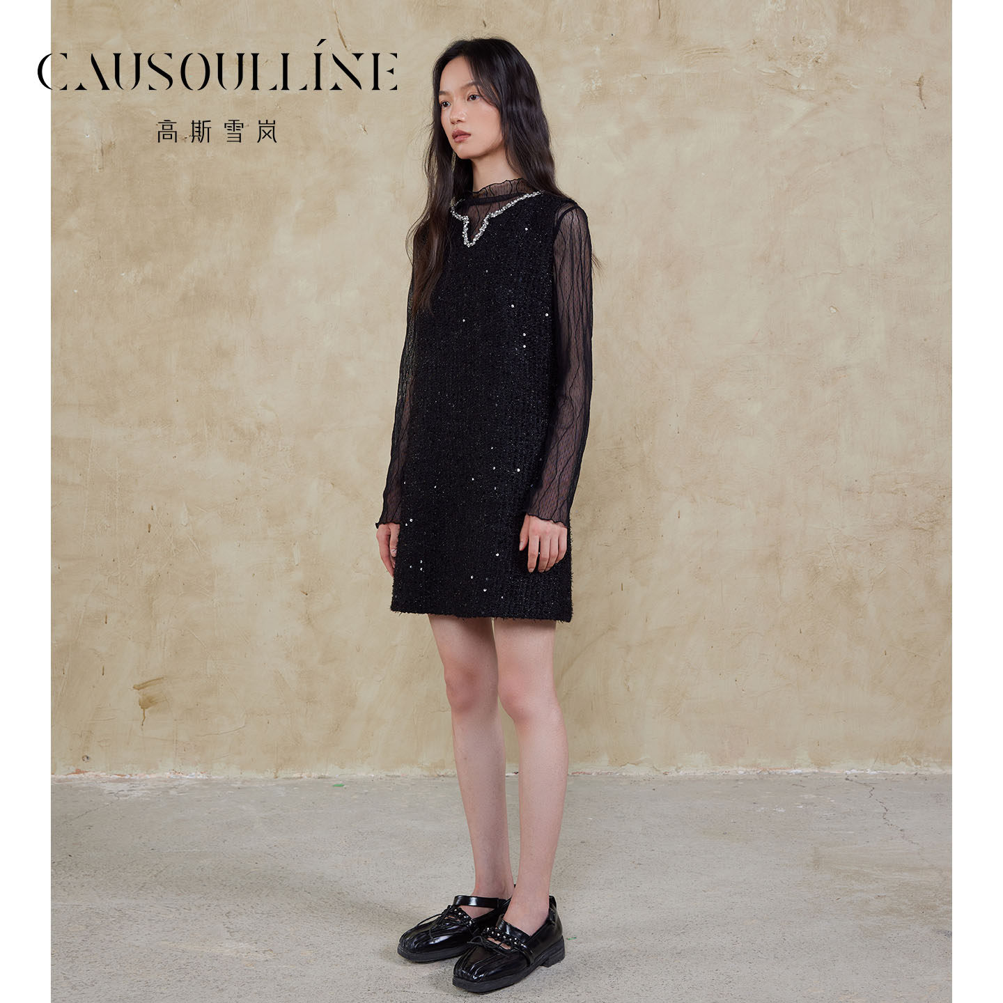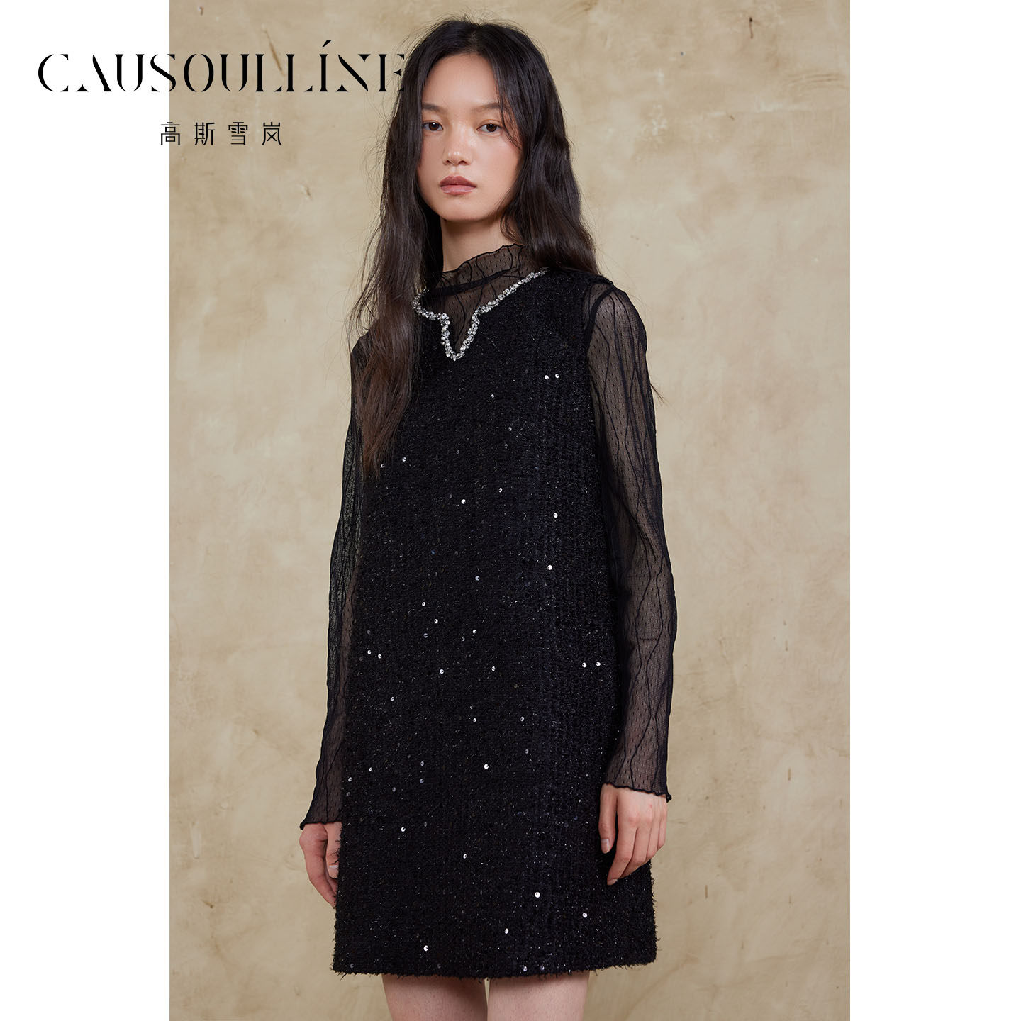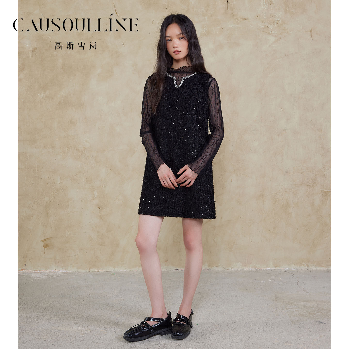 高斯雪岚2025秋装新韩版网纱拼接连衣裙气质亮片裙女25113501秋装