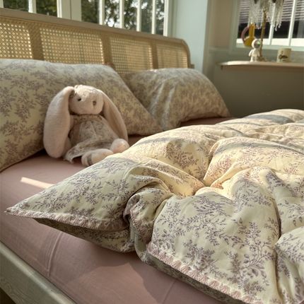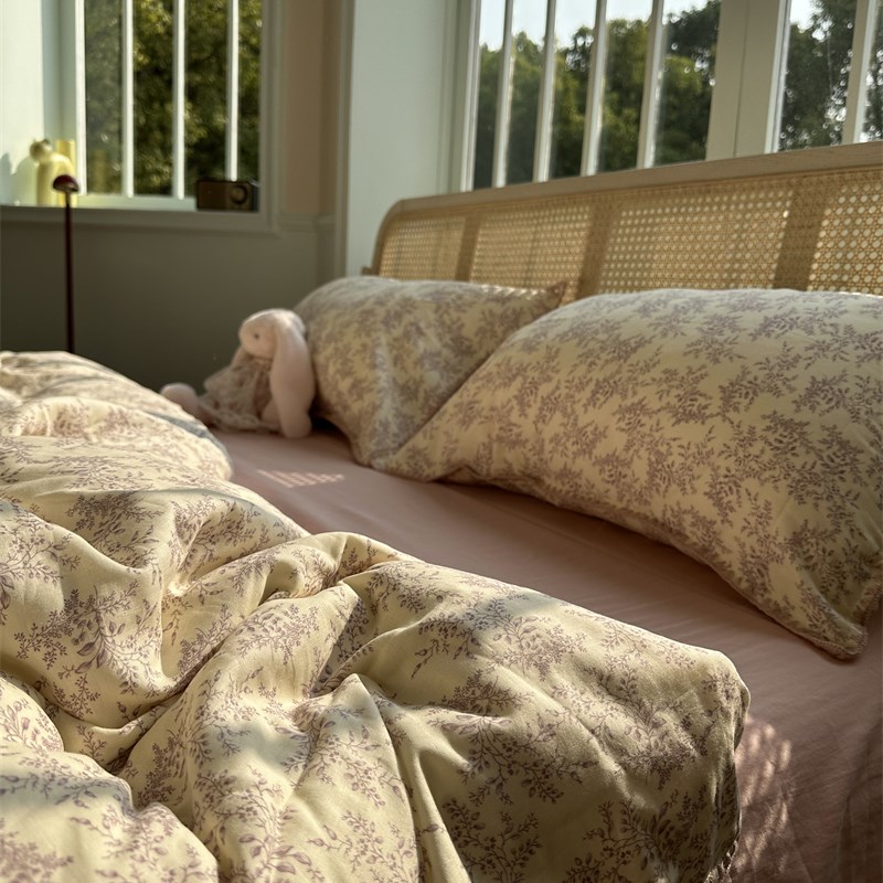 淡雅双层纱紫色花楹床上四件套少女纯棉1.5m1.8米被套床单三件套