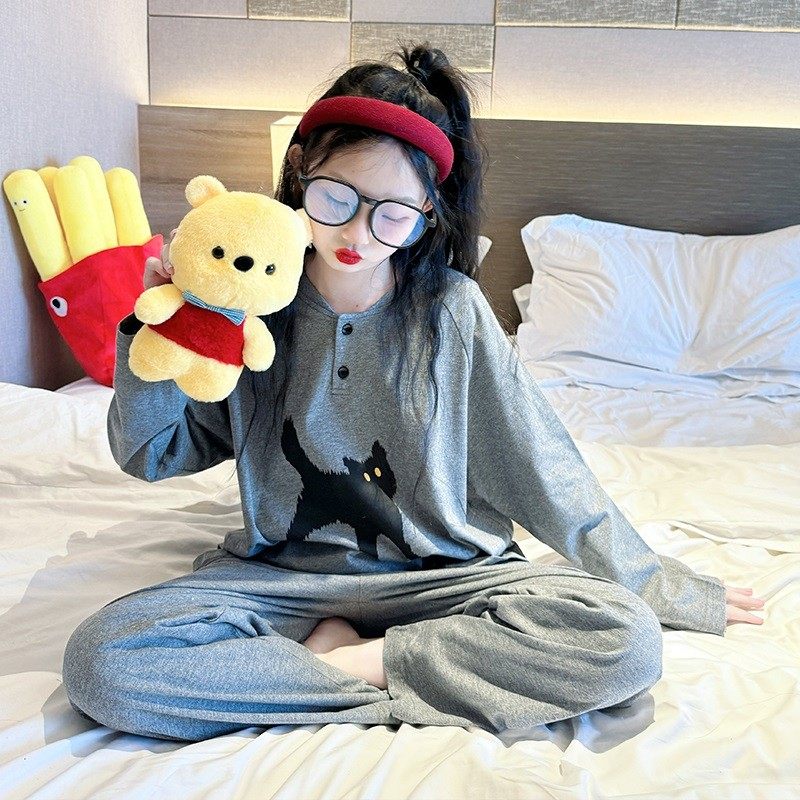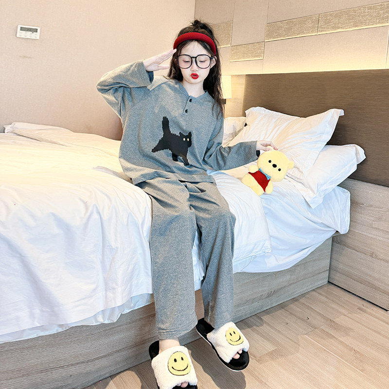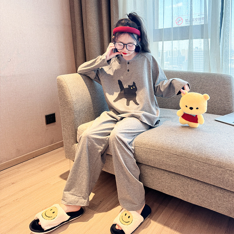 女童睡衣春秋款2026新款儿童春季纯棉家居服大童女孩长袖全棉套装