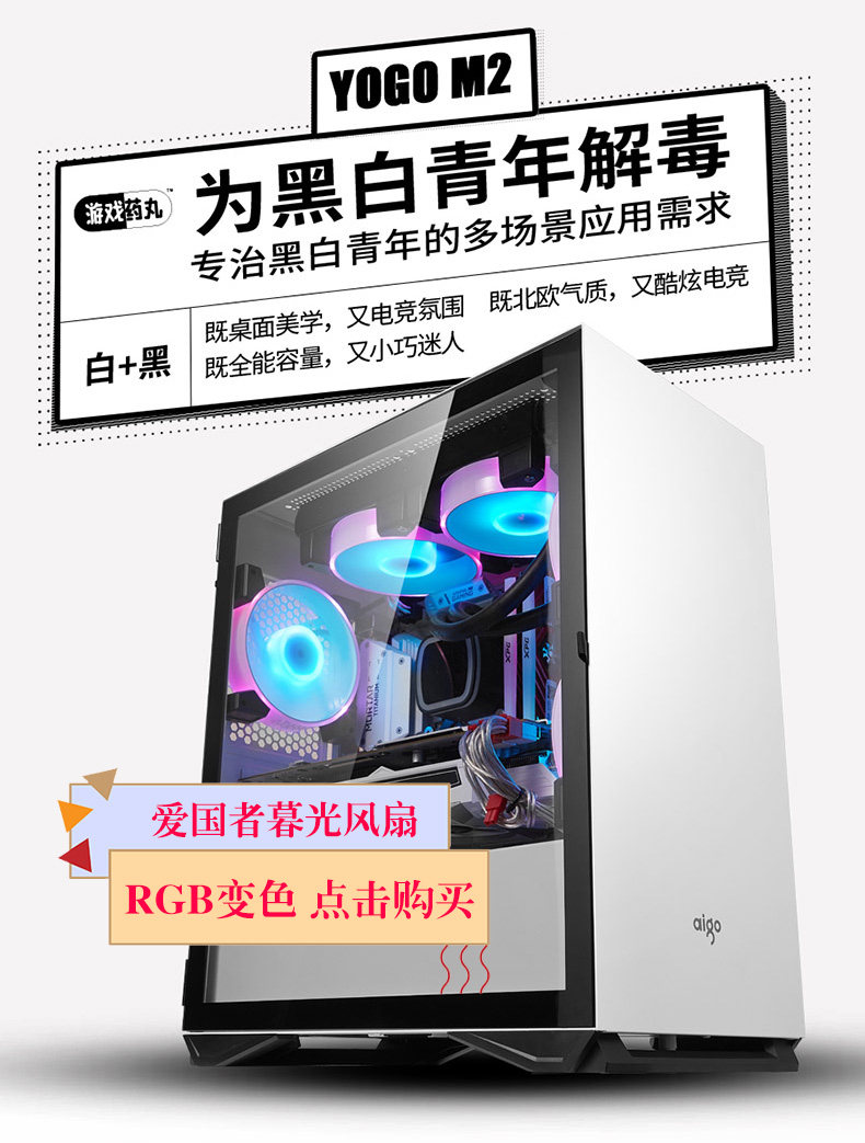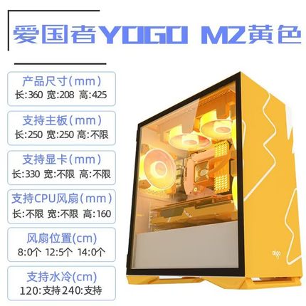 爱国者YOGO M2机箱matx侧透游戏水冷迷你台式电脑机箱白橙绿三色