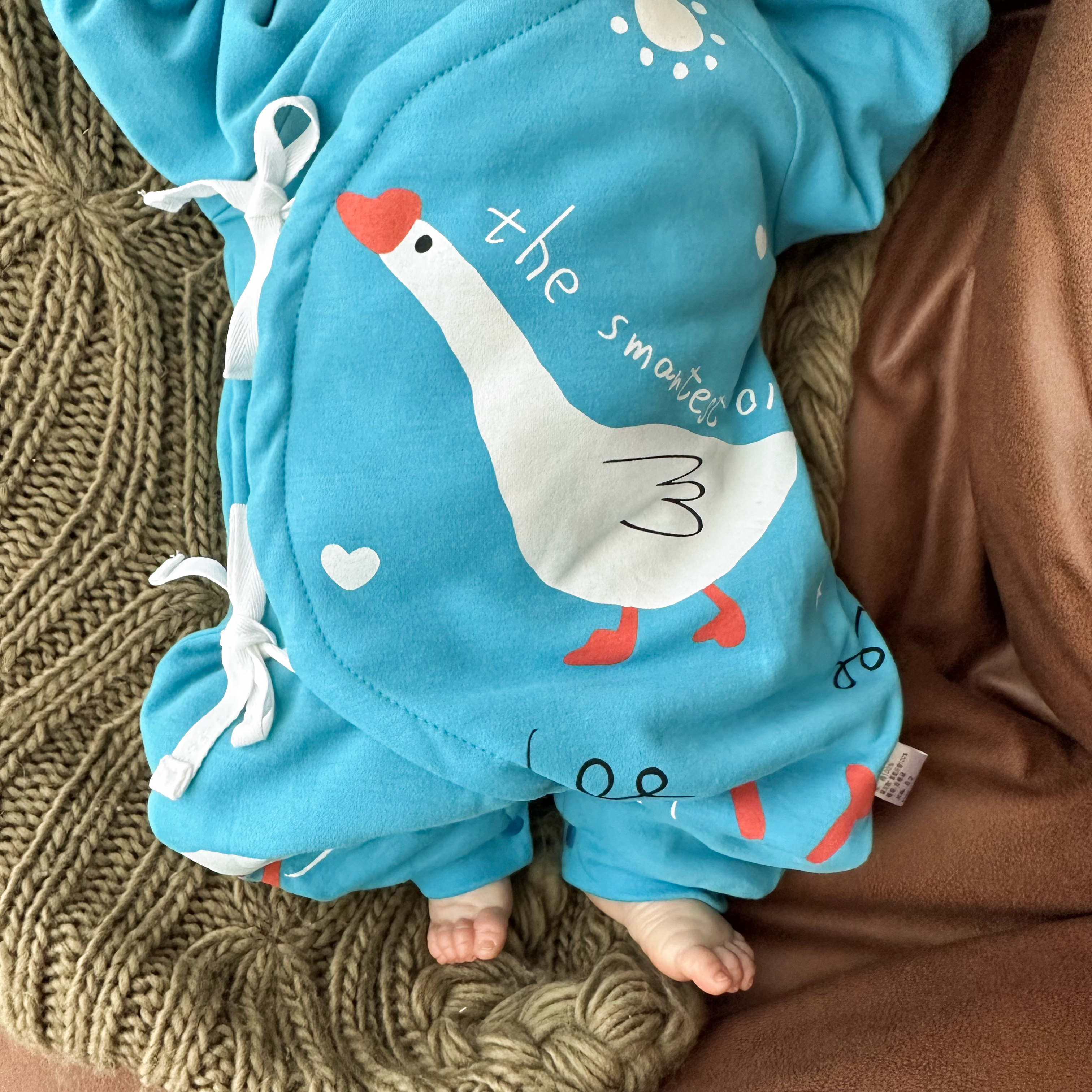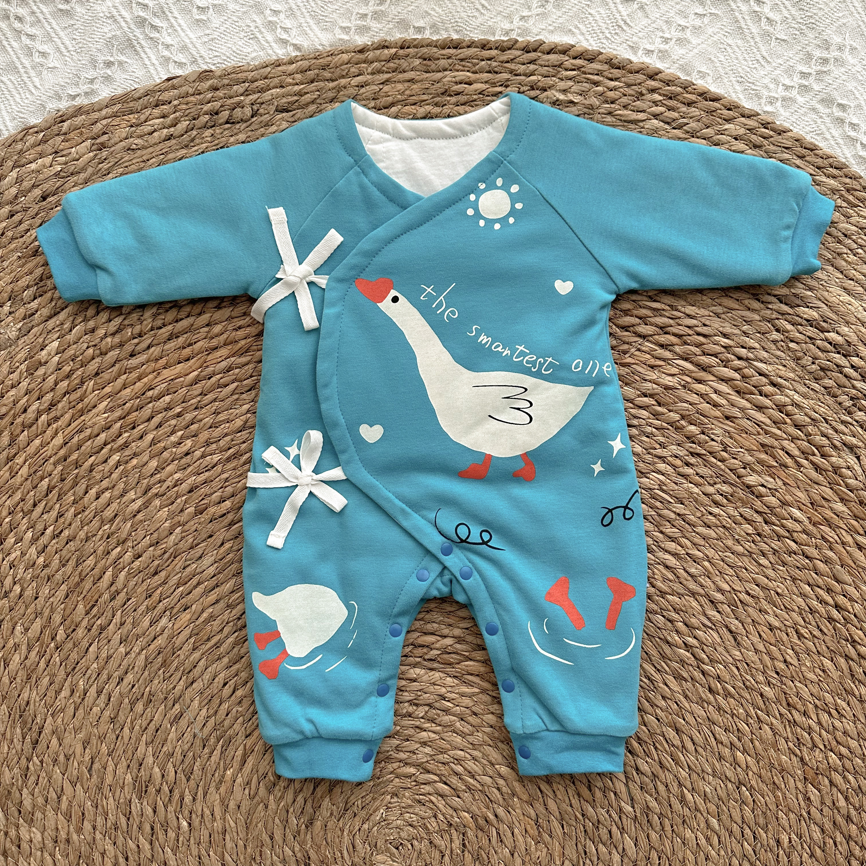 婴儿保暖棉服秋冬季宝宝夹棉连体衣新生儿薄棉袄纯棉护肚外出爬服