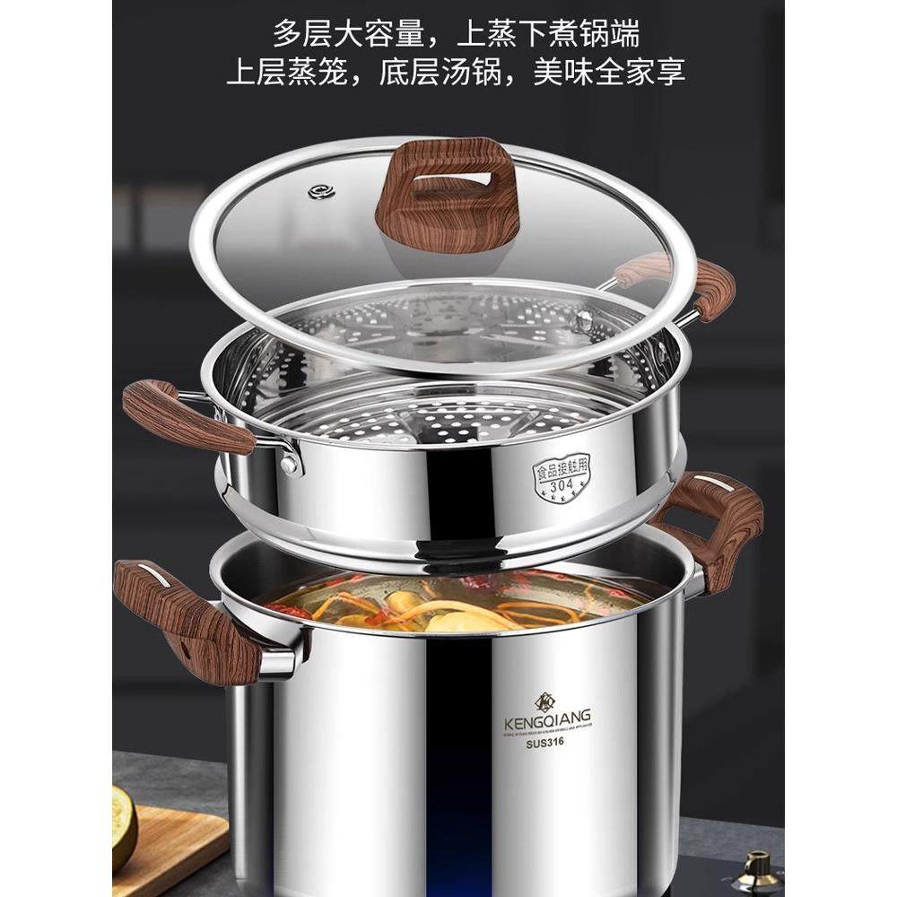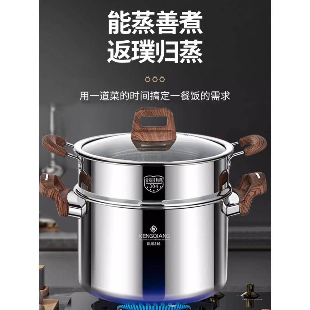 日本加厚汤锅家用316不锈钢加厚蒸锅汤锅炖锅电磁炉燃气通用