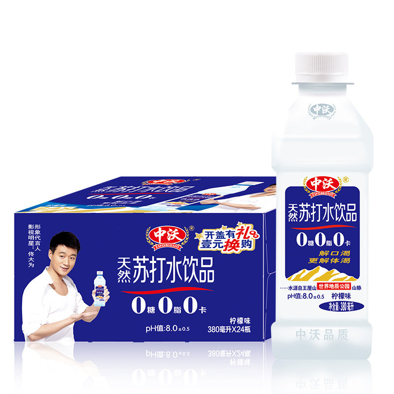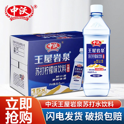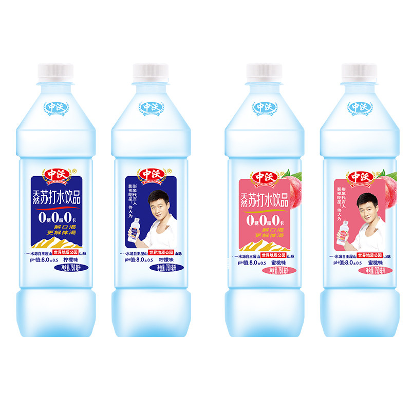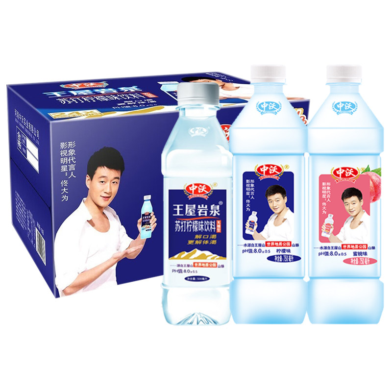 中沃苏打水380ml*24瓶整箱500/750ml/1L柠檬味蜜桃味弱碱性饮用水