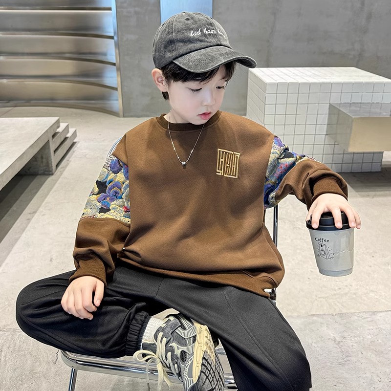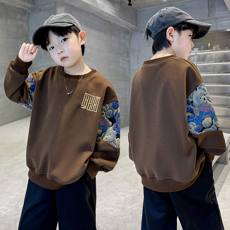 男童加绒卫衣秋冬款2025新款男孩体恤长袖打底衫中大童衣服秋装潮
