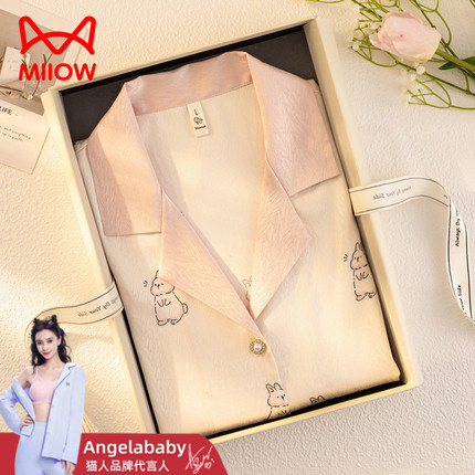 猫人冰丝睡衣女春夏季真丝兔子家居服送闺蜜女朋友生日礼物礼盒装