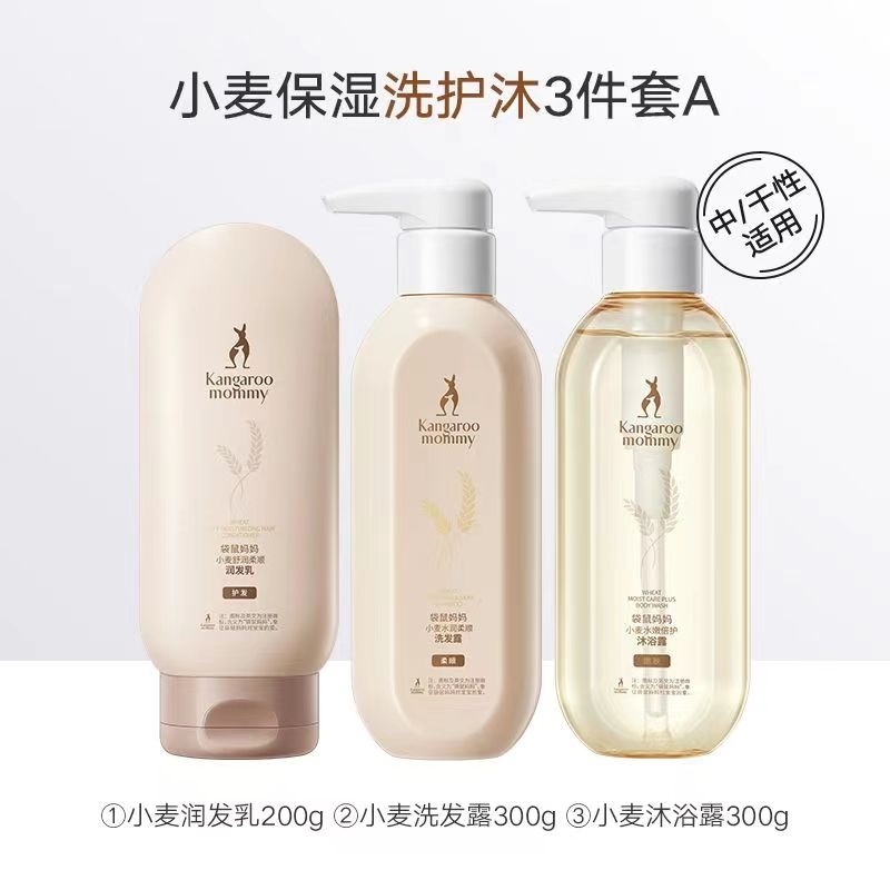 袋鼠妈妈准孕妇可用洗护沐浴套装洗发水沐浴露护发素保湿护肤官方