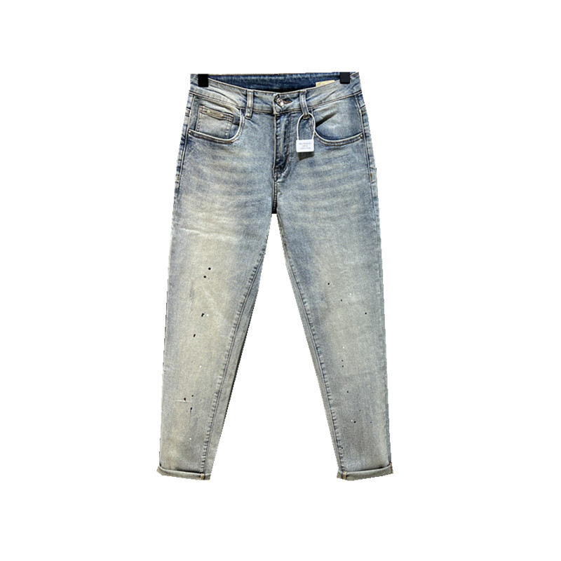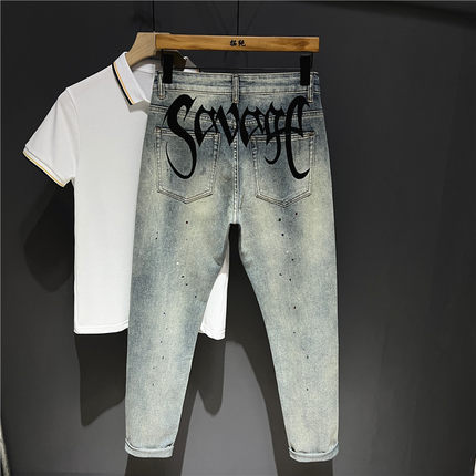 潮牌拉链长裤印花四季泼漆牛仔裤