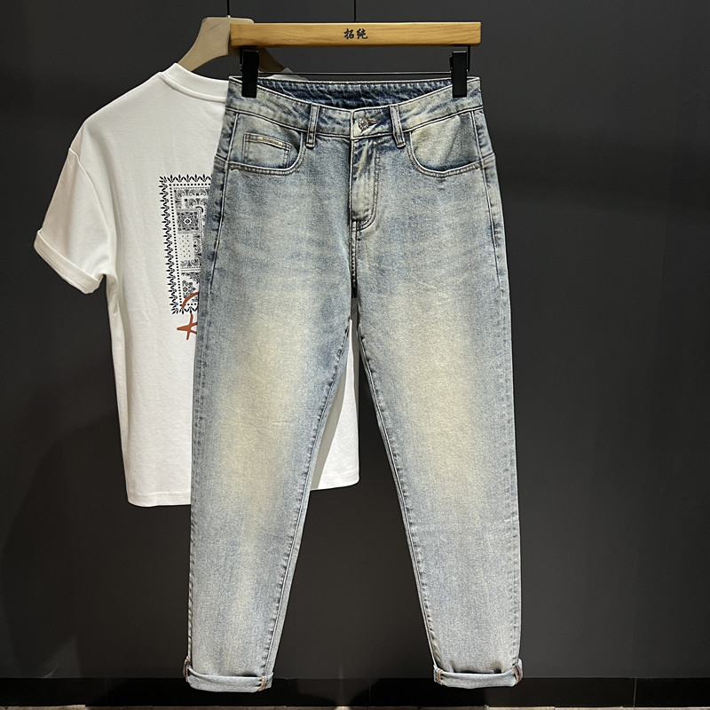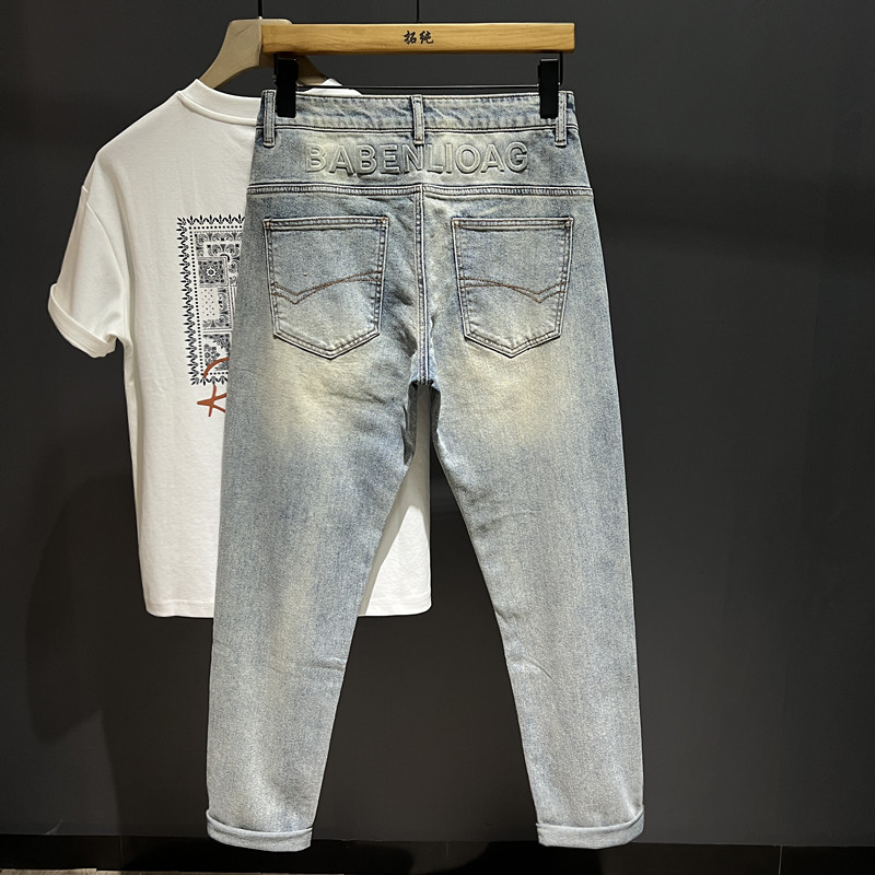 高端潮牌轻奢风2025秋冬款男士百搭修身弹力小直筒印花牛仔长裤子