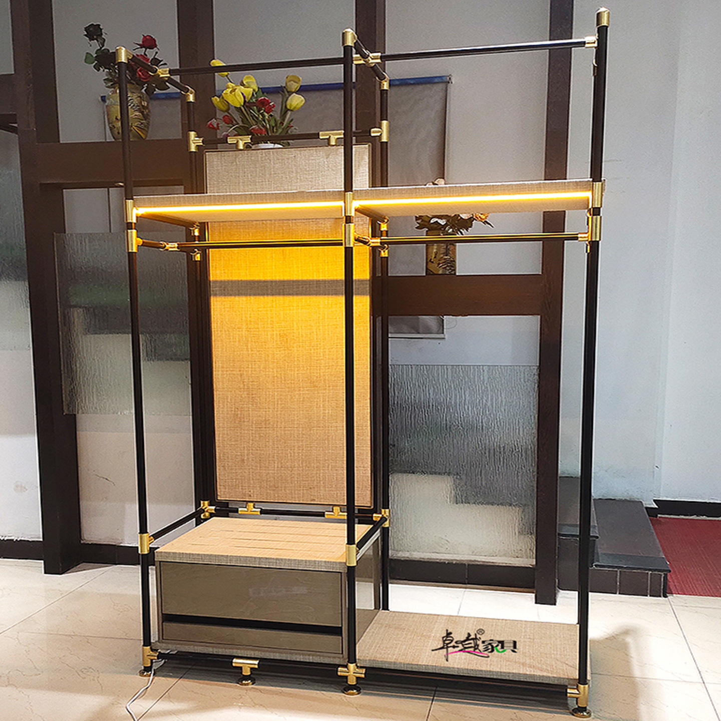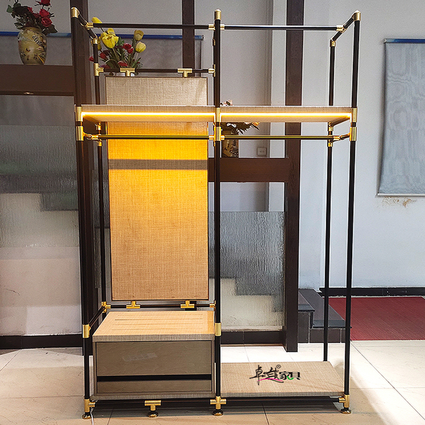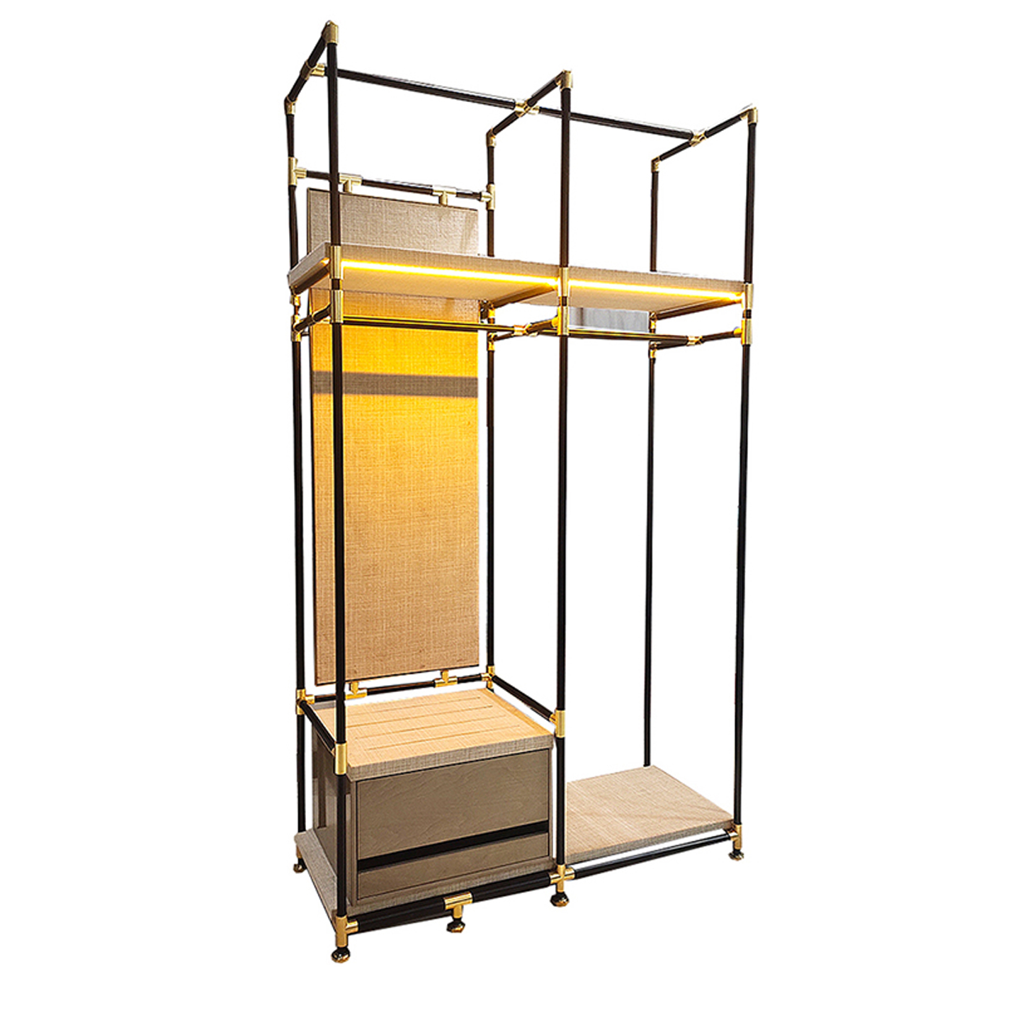 不锈钢落地卧室衣帽架轻奢现代家用置物架隔断北欧实木转角架金属