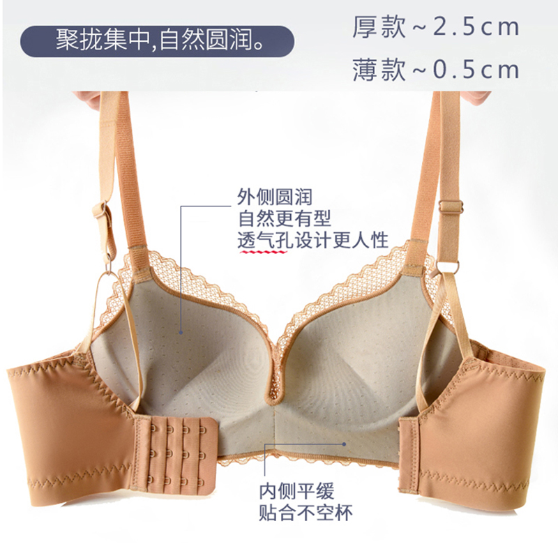 内衣女小胸聚拢性感防下垂厚调整型无钢圈薄款大胸显小美背文胸罩