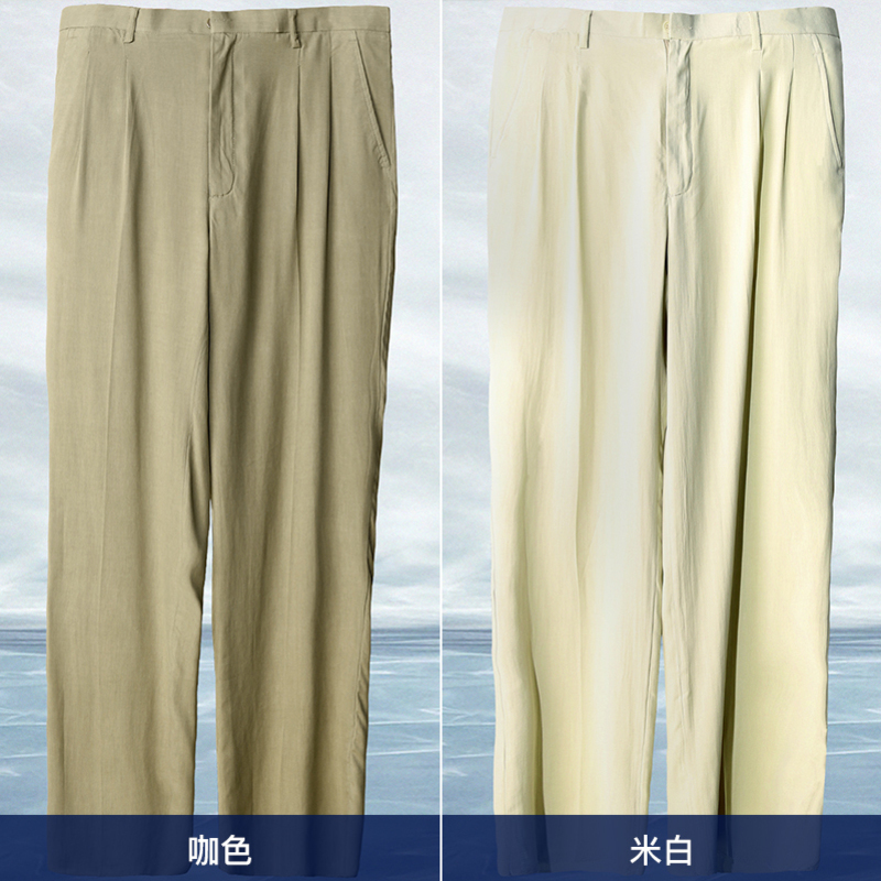 堡索桑蚕丝西裤男夏季薄款长裤中老年男士宽松休闲裤垂感真丝裤子