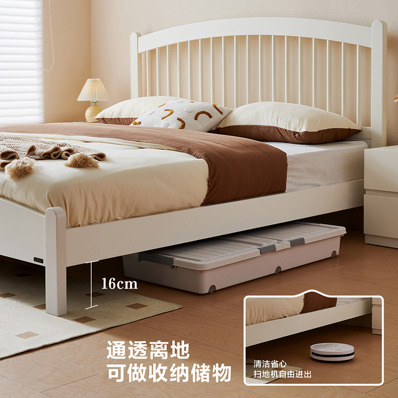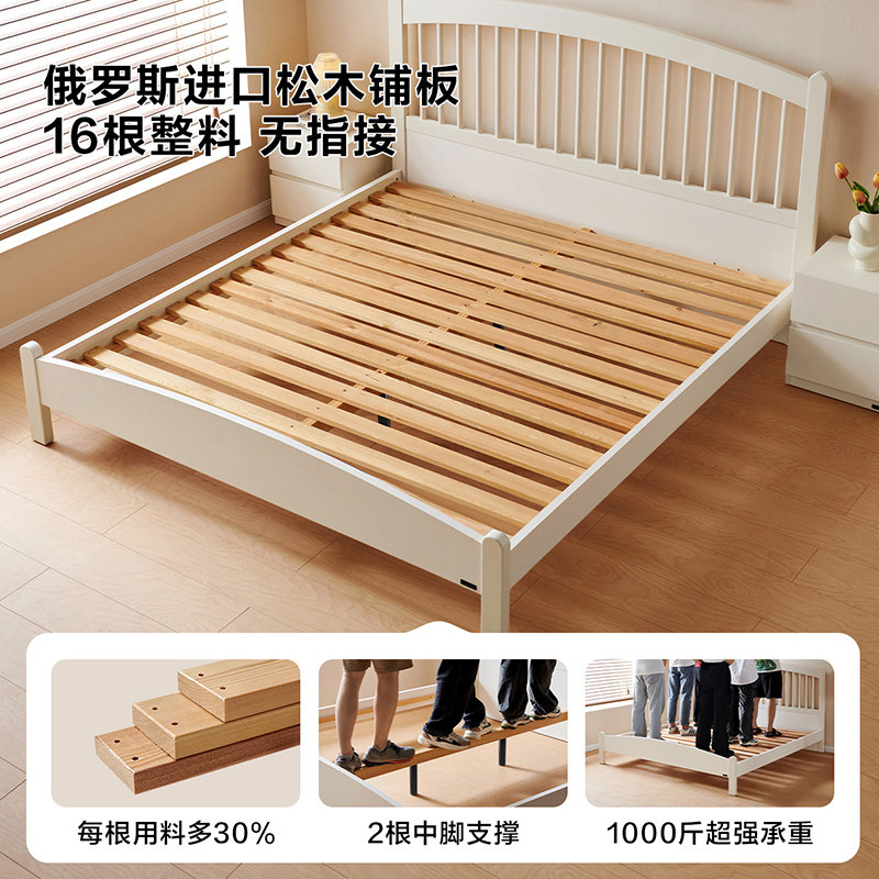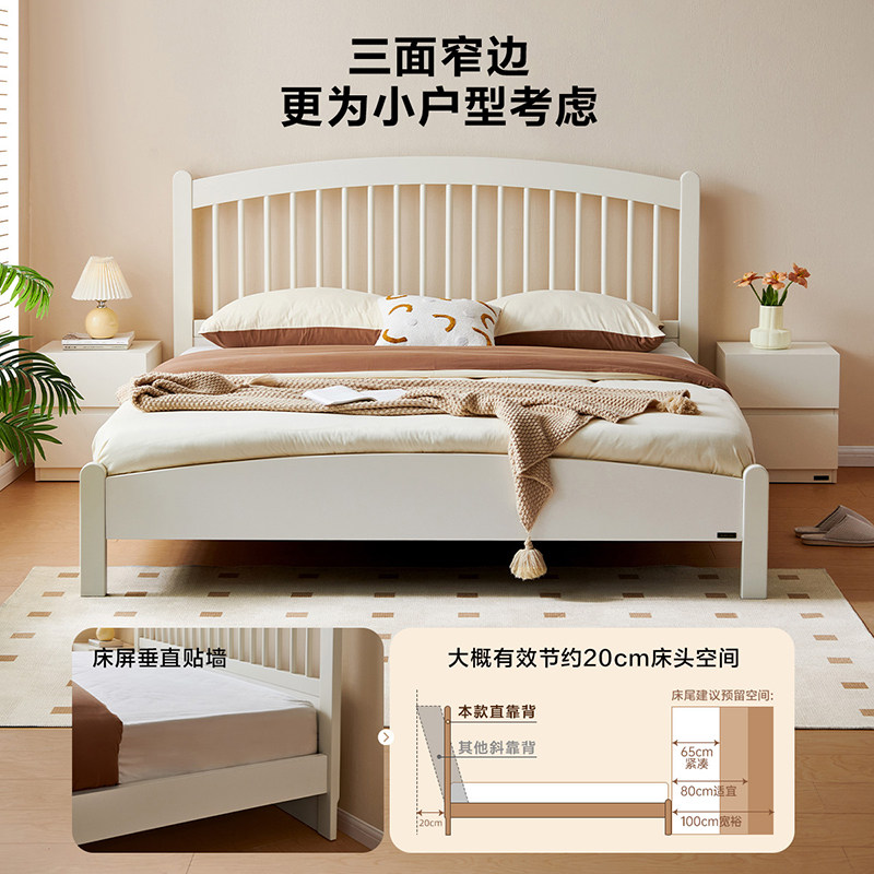 全友家居现代简约网红竖琴床女生卧室公主床小户型实木脚双人床